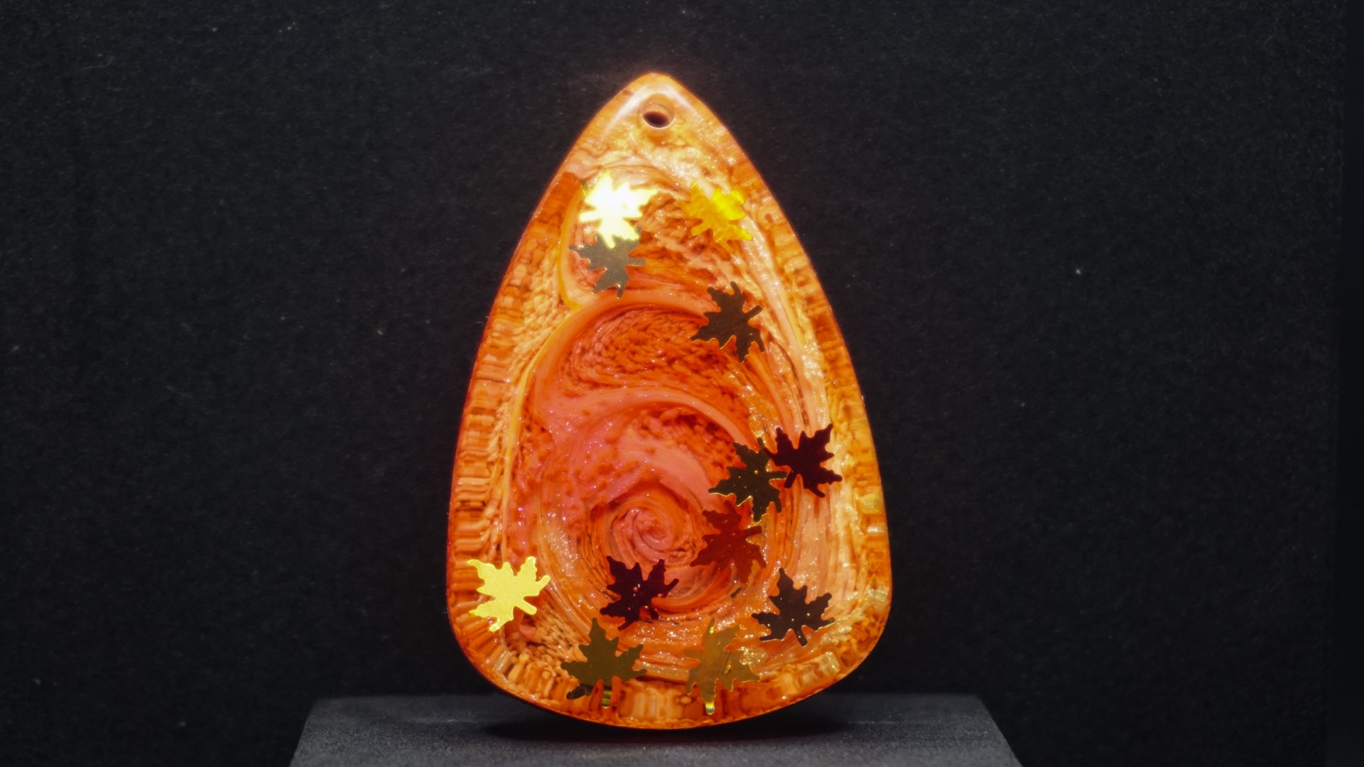 All of our pieces are resin based, featuring a variety of shimmery/sparkly mica backdrops, alcohol ink, and hand painted designs. At this time we are only including personalization on the back of the tag to not compete with the design. Most alcohol ink tags are backed in either black or white depending on what we feel works the best.