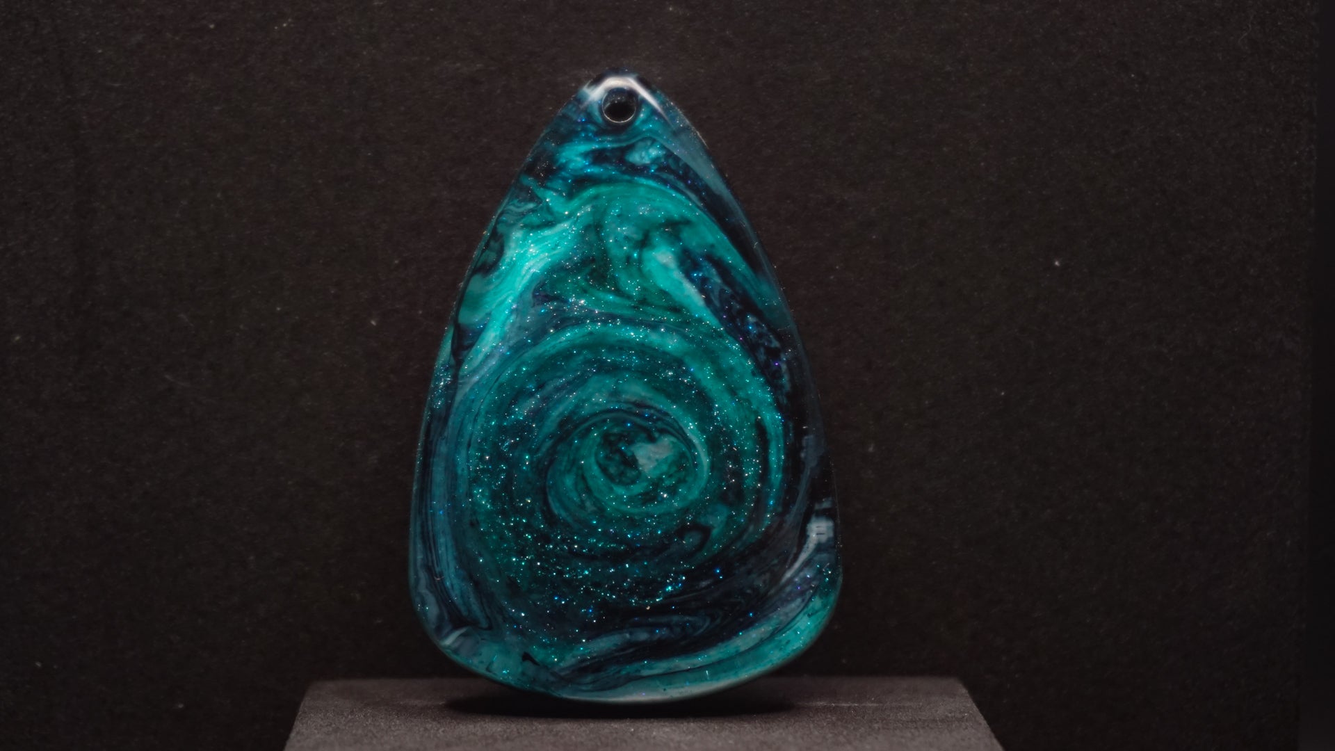 All of our pieces are resin based, featuring a variety of shimmery/sparkly mica backdrops, alcohol ink, and hand painted designs. At this time we are only including personalization on the back of the tag to not compete with the design. Most alcohol ink tags are backed in either black or white depending on what we feel works the best.