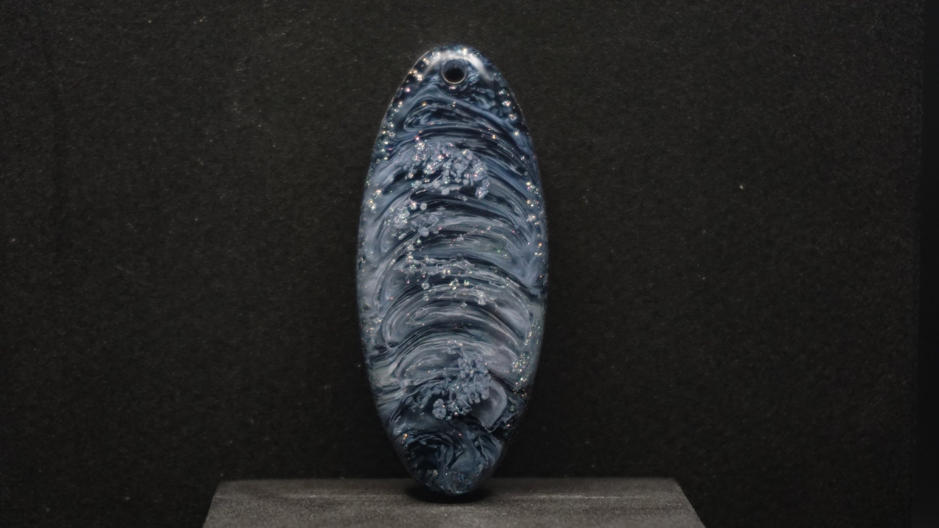 All of our pieces are resin based, featuring a variety of shimmery/sparkly mica backdrops, alcohol ink, and hand painted designs. At this time we are only including personalization on the back of the tag to not compete with the design. Most alcohol ink tags are backed in either black or white depending on what we feel works the best.