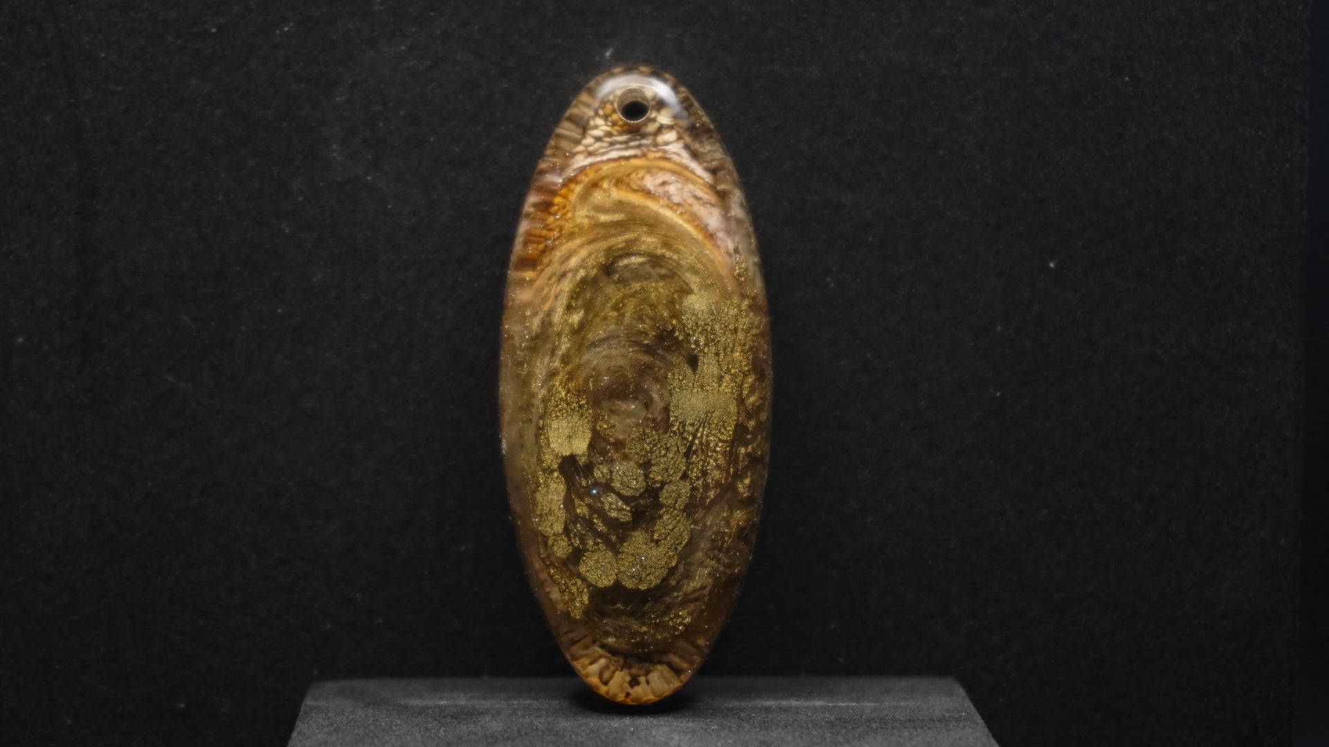 All of our pieces are resin based, featuring a variety of shimmery/sparkly mica backdrops, alcohol ink, and hand painted designs. At this time we are only including personalization on the back of the tag to not compete with the design. Most alcohol ink tags are backed in either black or white depending on what we feel works the best.