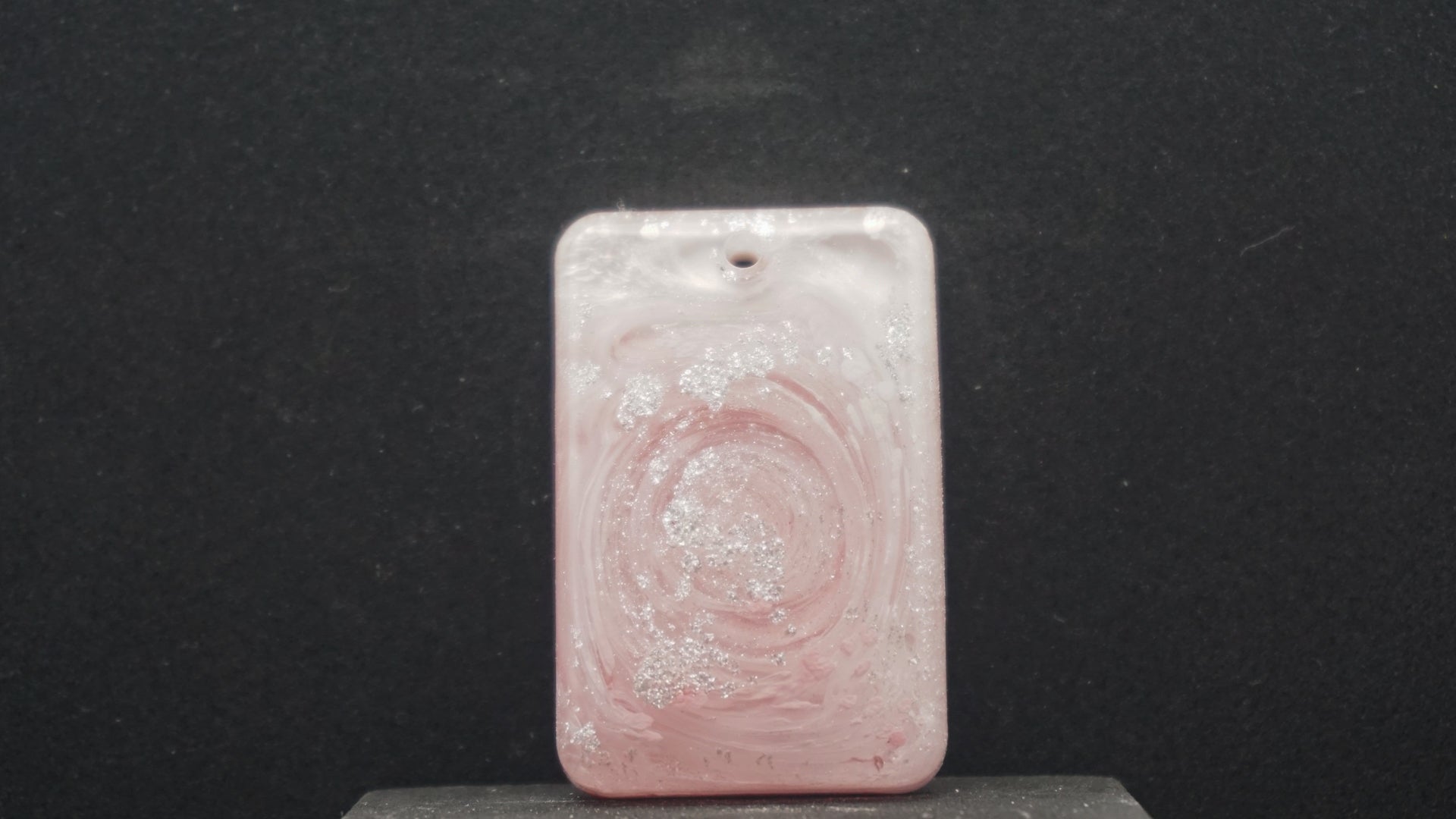 All of our pieces are resin based, featuring a variety of shimmery/sparkly mica backdrops, alcohol ink, and hand painted designs. At this time we are only including personalization on the back of the tag to not compete with the design. Most alcohol ink tags are backed in either black or white depending on what we feel works the best.