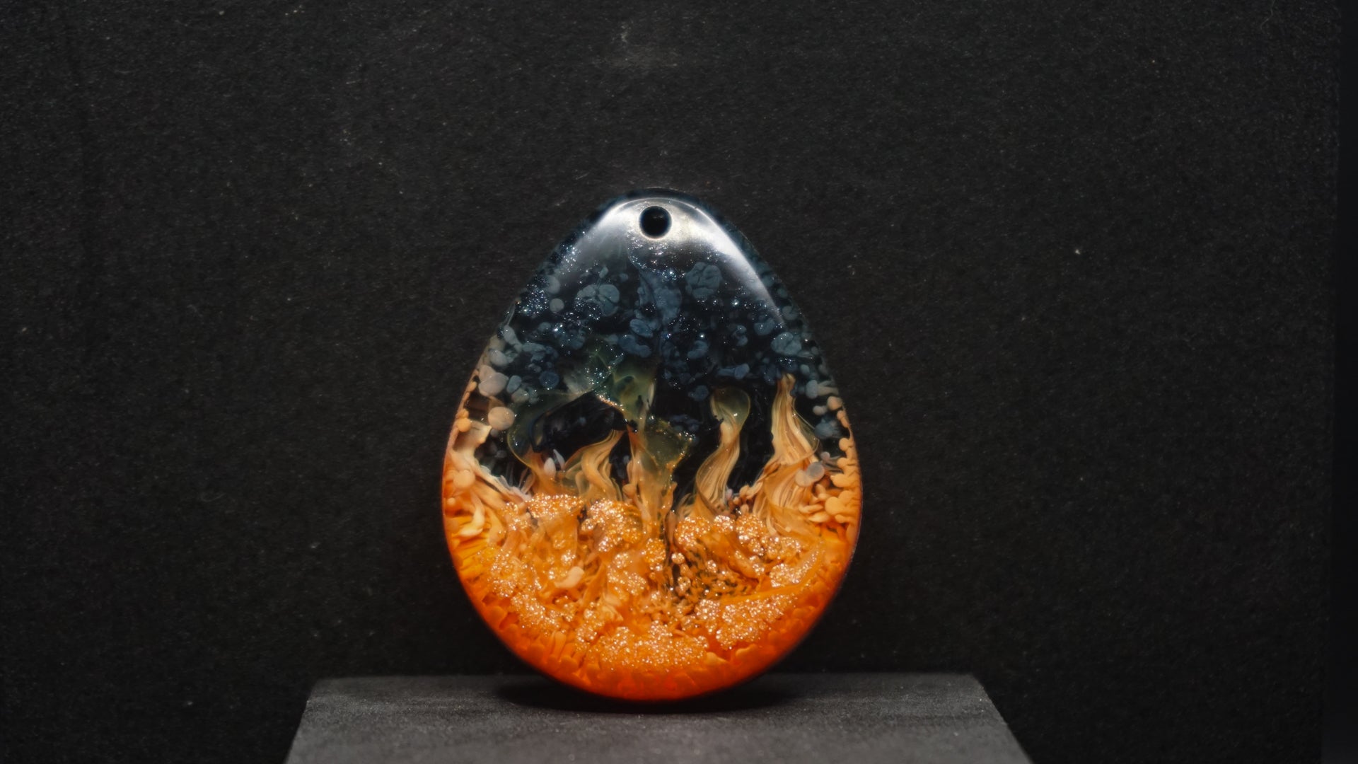 All of our pieces are resin based, featuring a variety of shimmery/sparkly mica backdrops, alcohol ink, and hand painted designs. At this time we are only including personalization on the back of the tag to not compete with the design. Most alcohol ink tags are backed in either black or white depending on what we feel works the best.