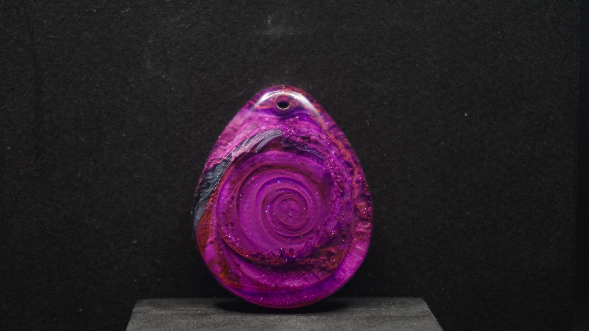 All of our pieces are resin based, featuring a variety of shimmery/sparkly mica backdrops, alcohol ink, and hand painted designs. At this time we are only including personalization on the back of the tag to not compete with the design. Most alcohol ink tags are backed in either black or white depending on what we feel works the best.