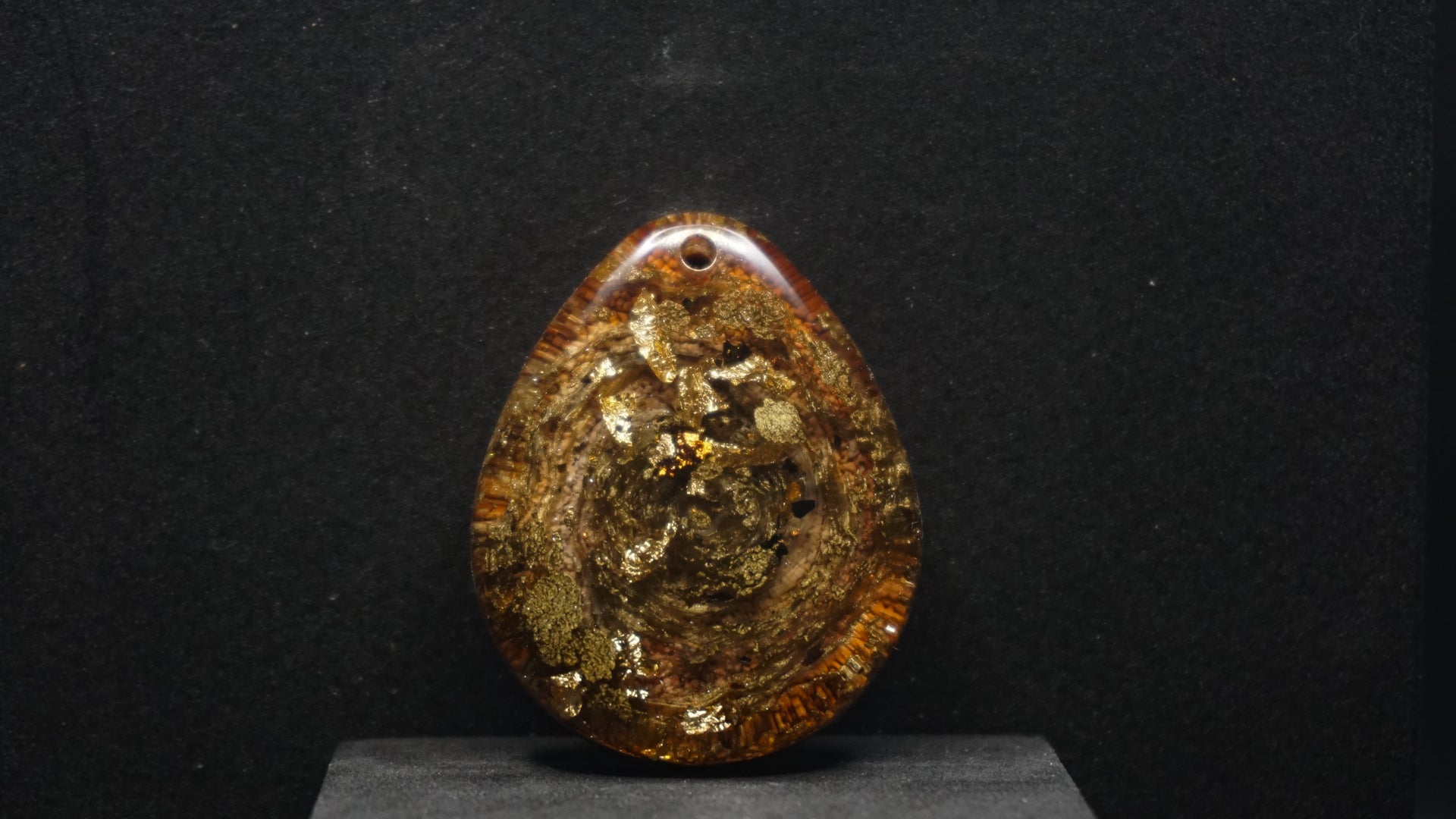 All of our pieces are resin based, featuring a variety of shimmery/sparkly mica backdrops, alcohol ink, and hand painted designs. At this time we are only including personalization on the back of the tag to not compete with the design. Most alcohol ink tags are backed in either black or white depending on what we feel works the best.