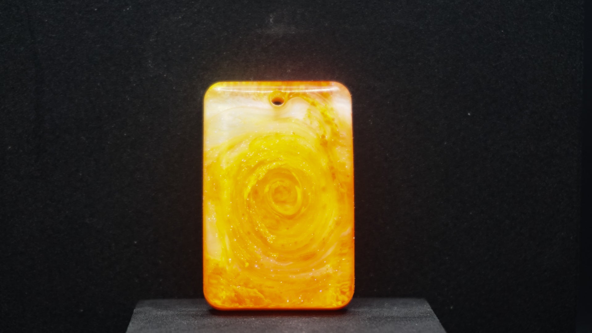 All of our pieces are resin based, featuring a variety of shimmery/sparkly mica backdrops, alcohol ink, and hand painted designs. At this time we are only including personalization on the back of the tag to not compete with the design. Most alcohol ink tags are backed in either black or white depending on what we feel works the best.