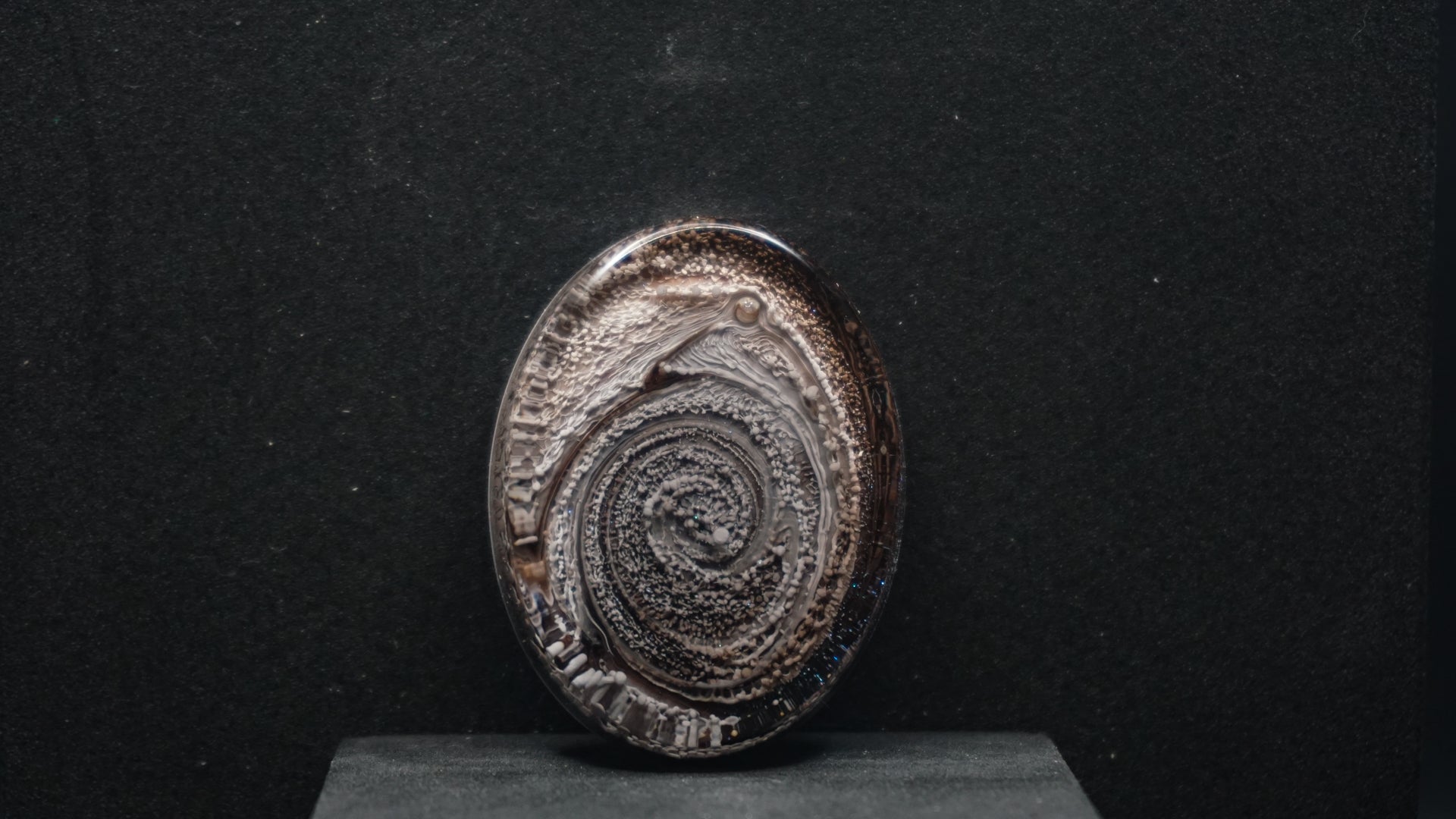 All of our pieces are resin based, featuring a variety of shimmery/sparkly mica backdrops, alcohol ink, and hand painted designs. At this time we are only including personalization on the back of the tag to not compete with the design. Most alcohol ink tags are backed in either black or white depending on what we feel works the best.