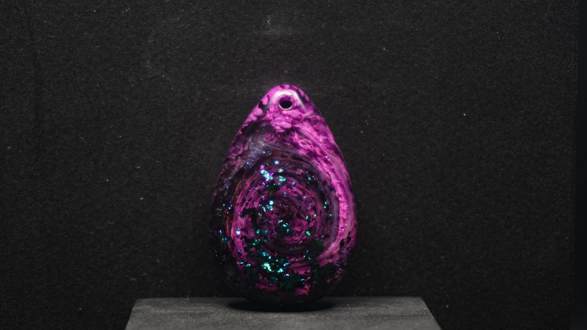 All of our pieces are resin based, featuring a variety of shimmery/sparkly mica backdrops, alcohol ink, and hand painted designs. At this time we are only including personalization on the back of the tag to not compete with the design. Most alcohol ink tags are backed in either black or white depending on what we feel works the best.