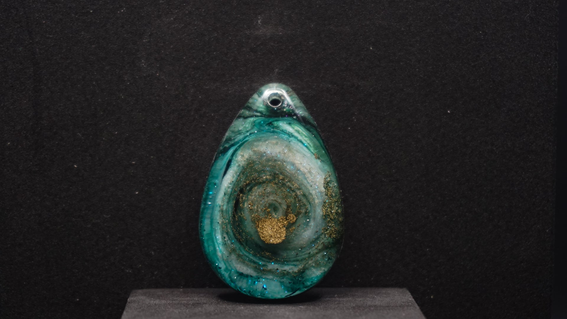 All of our pieces are resin based, featuring a variety of shimmery/sparkly mica backdrops, alcohol ink, and hand painted designs. At this time we are only including personalization on the back of the tag to not compete with the design. Most alcohol ink tags are backed in either black or white depending on what we feel works the best.