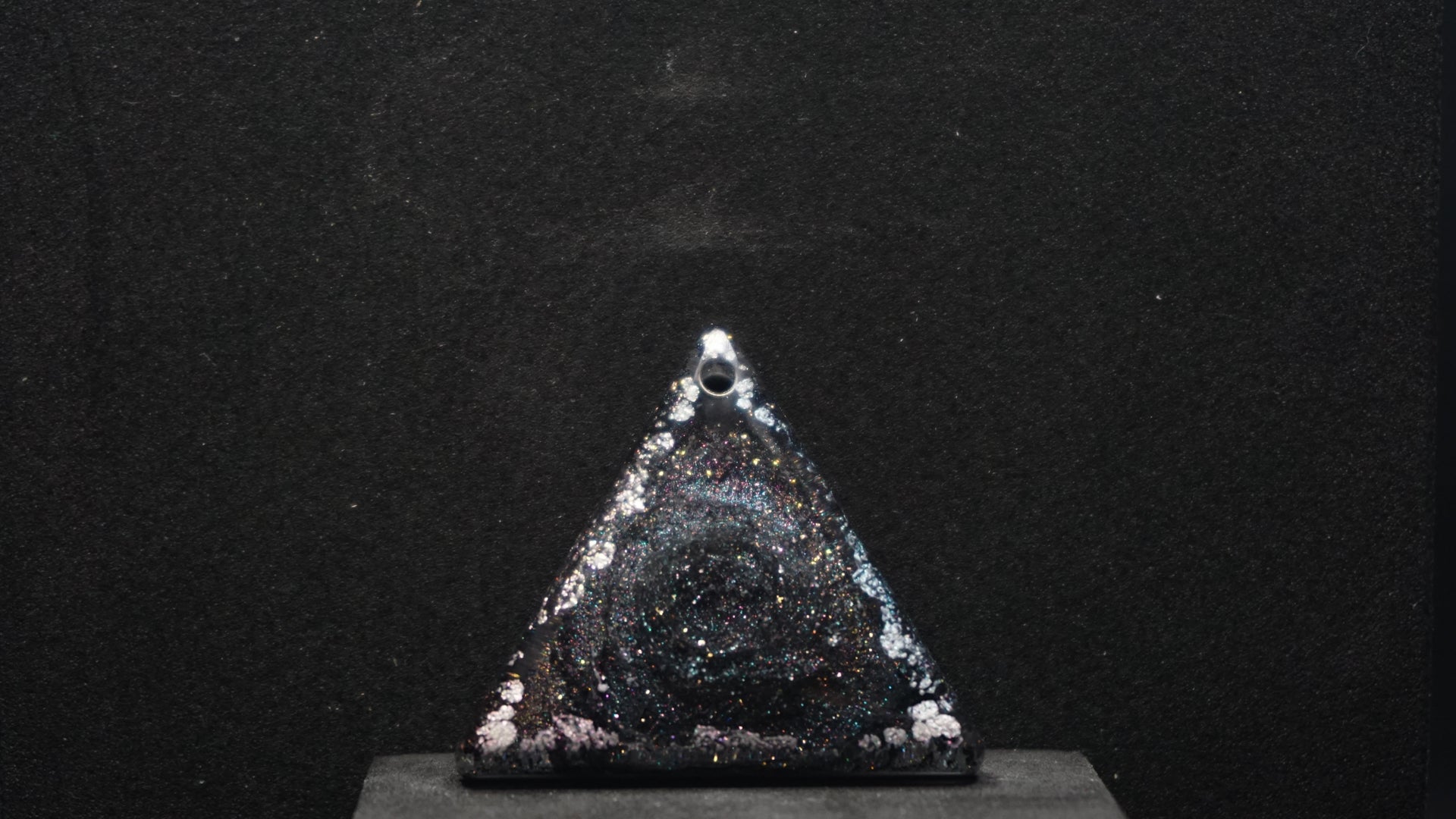 All of our pieces are resin based, featuring a variety of shimmery/sparkly mica backdrops, alcohol ink, and hand painted designs. At this time we are only including personalization on the back of the tag to not compete with the design. Most alcohol ink tags are backed in either black or white depending on what we feel works the best.