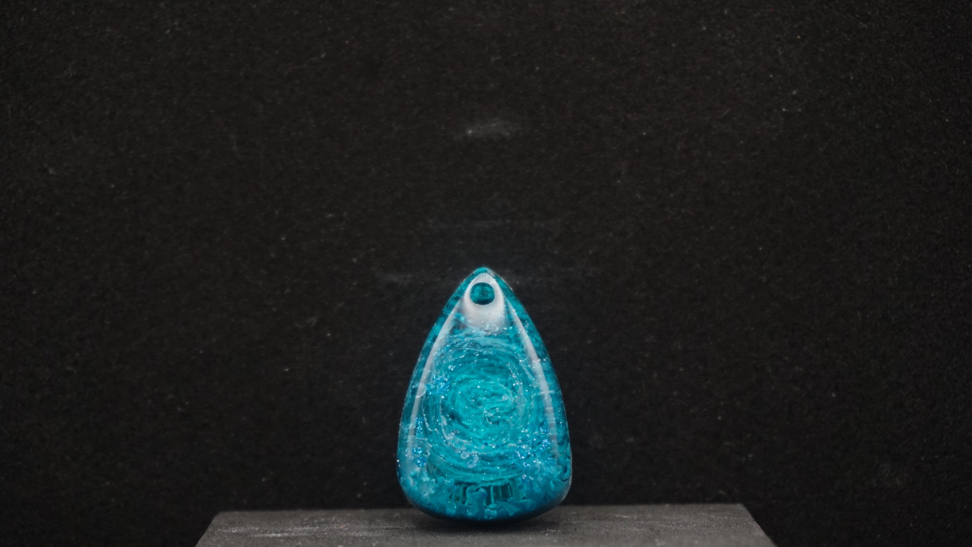 All of our pieces are resin based, featuring a variety of shimmery/sparkly mica backdrops, alcohol ink, and hand painted designs. At this time we are only including personalization on the back of the tag to not compete with the design. Most alcohol ink tags are backed in either black or white depending on what we feel works the best.