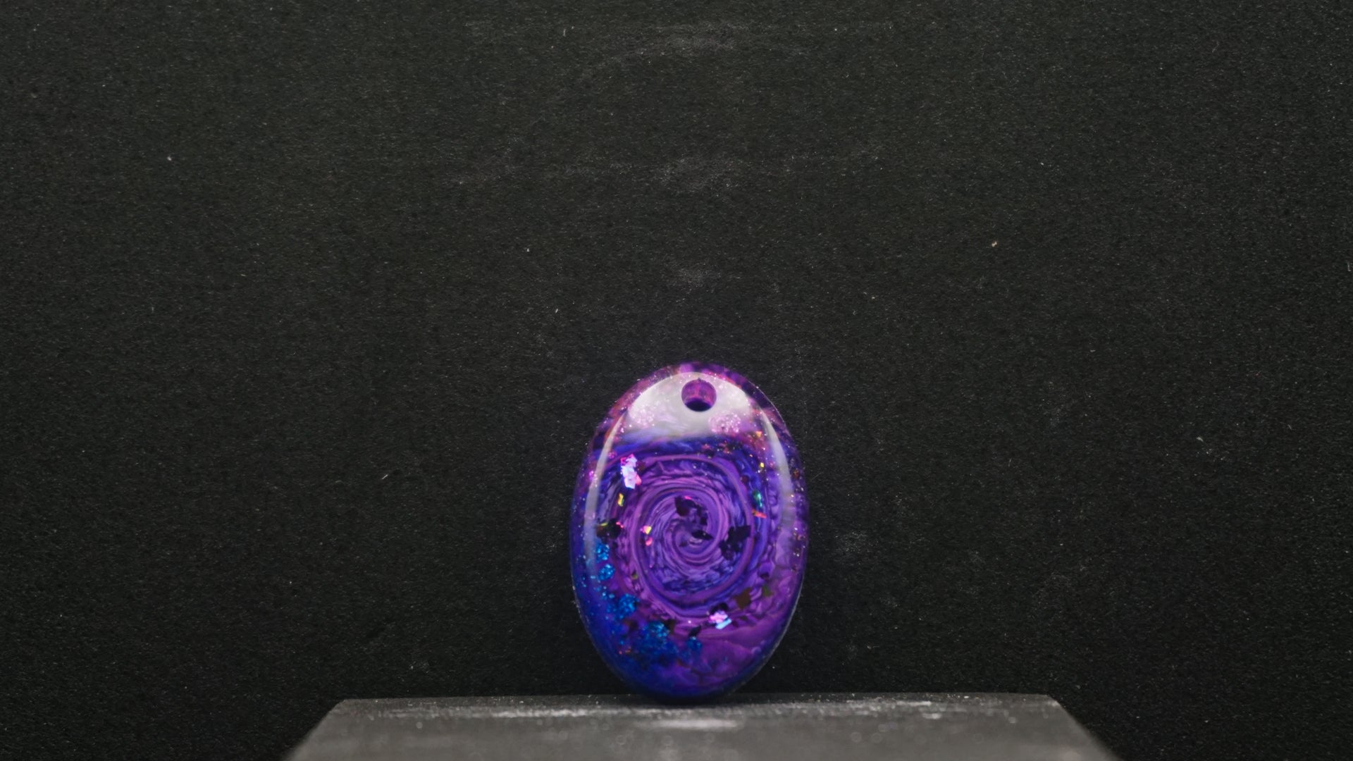 All of our pieces are resin based, featuring a variety of shimmery/sparkly mica backdrops, alcohol ink, and hand painted designs. At this time we are only including personalization on the back of the tag to not compete with the design. Most alcohol ink tags are backed in either black or white depending on what we feel works the best.