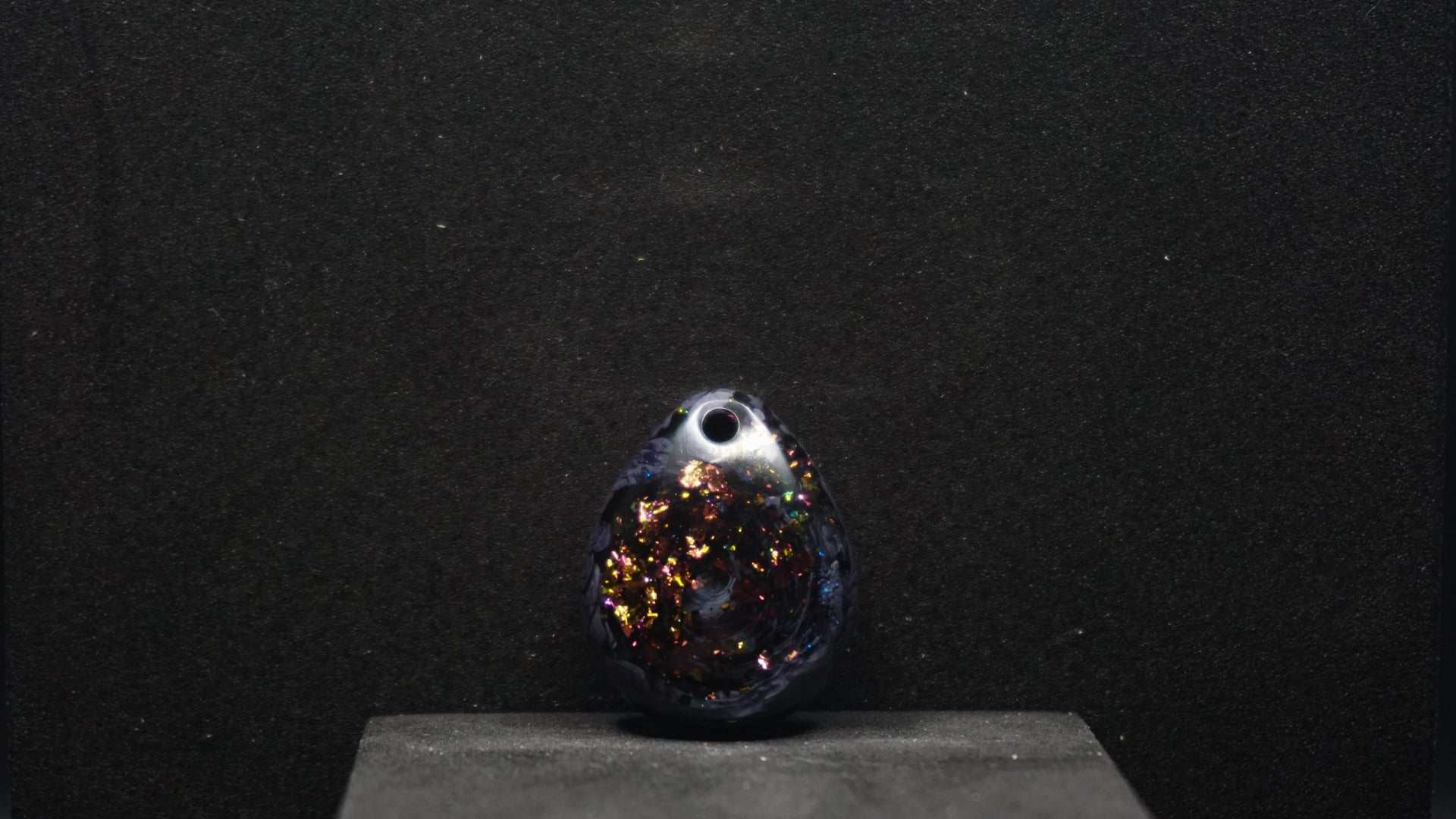 All of our pieces are resin based, featuring a variety of shimmery/sparkly mica backdrops, alcohol ink, and hand painted designs. At this time we are only including personalization on the back of the tag to not compete with the design. Most alcohol ink tags are backed in either black or white depending on what we feel works the best.