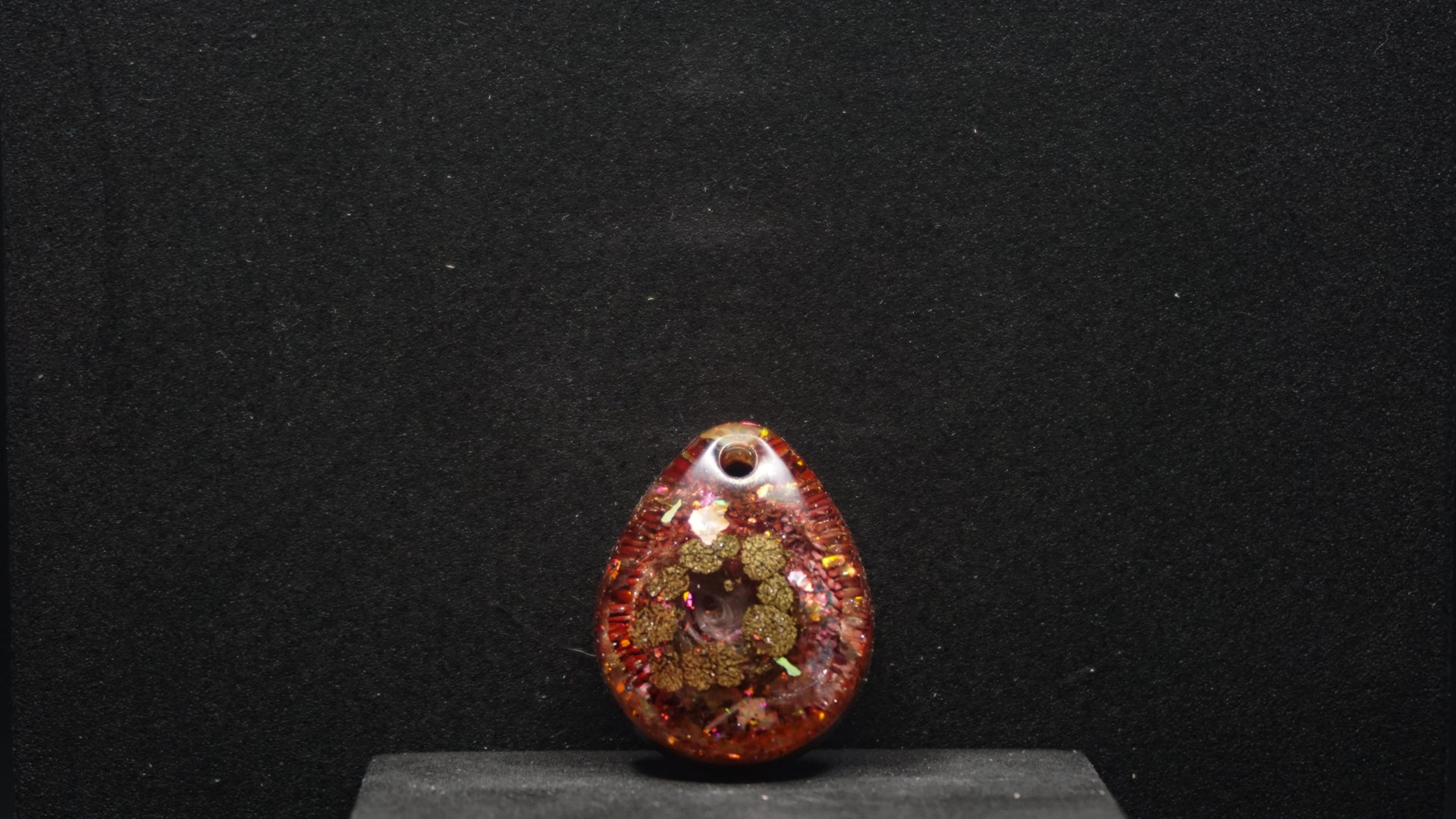 All of our pieces are resin based, featuring a variety of shimmery/sparkly mica backdrops, alcohol ink, and hand painted designs. At this time we are only including personalization on the back of the tag to not compete with the design. Most alcohol ink tags are backed in either black or white depending on what we feel works the best.
