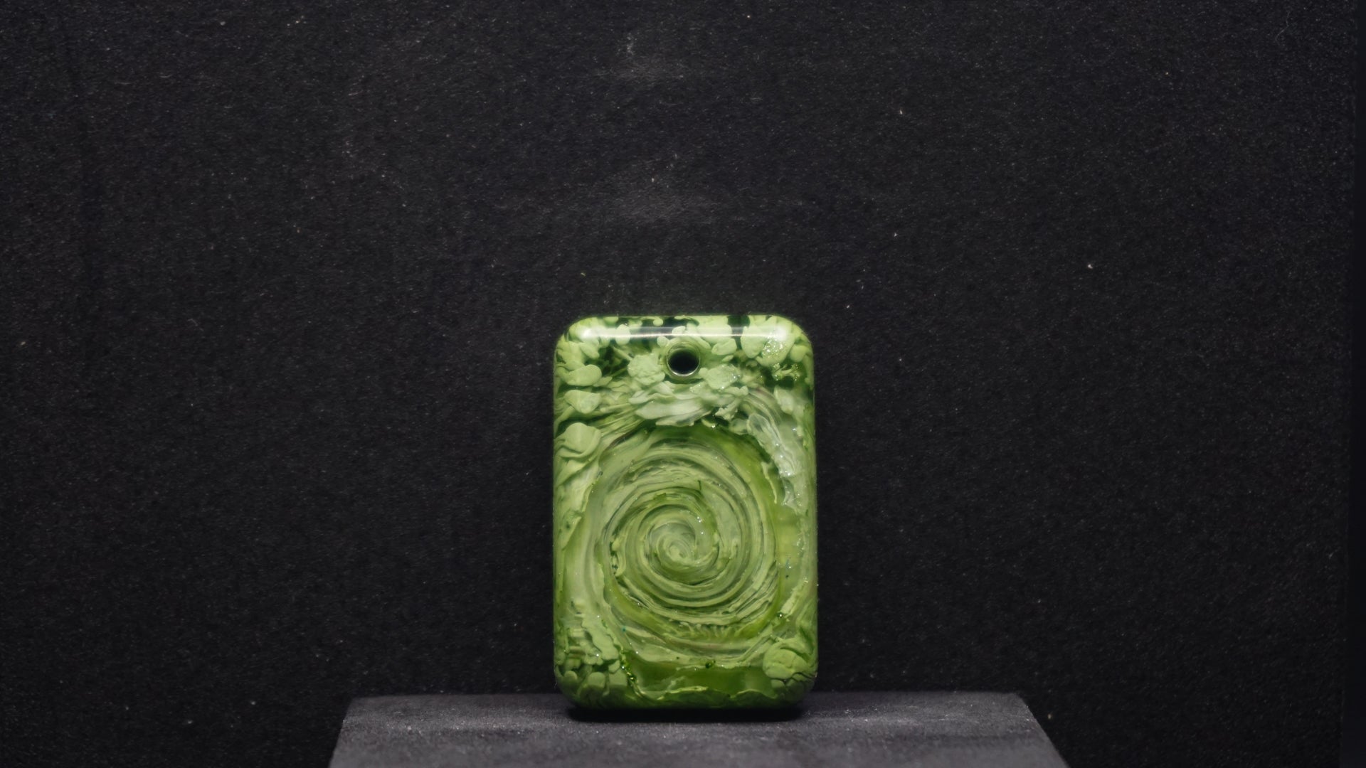 All of our pieces are resin based, featuring a variety of shimmery/sparkly mica backdrops, alcohol ink, and hand painted designs. At this time we are only including personalization on the back of the tag to not compete with the design. Most alcohol ink tags are backed in either black or white depending on what we feel works the best.