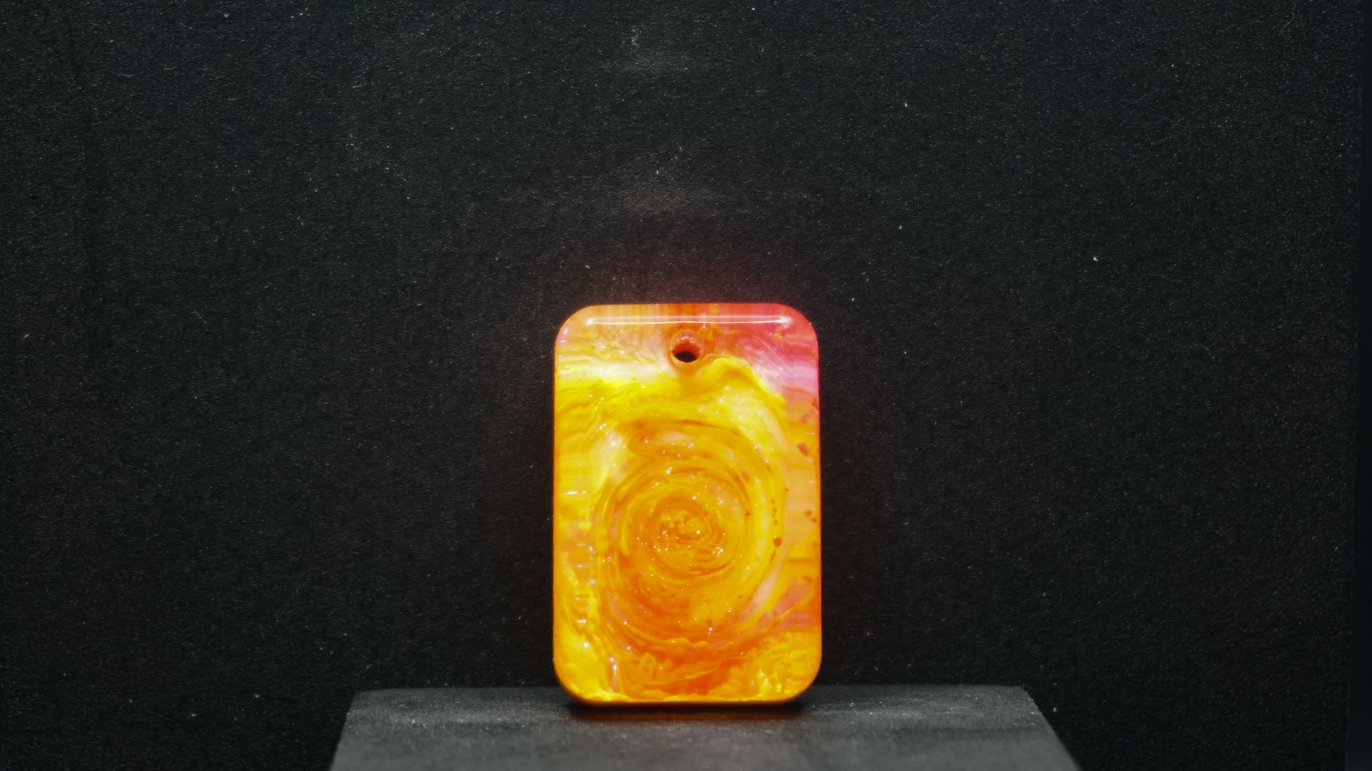All of our pieces are resin based, featuring a variety of shimmery/sparkly mica backdrops, alcohol ink, and hand painted designs. At this time we are only including personalization on the back of the tag to not compete with the design. Most alcohol ink tags are backed in either black or white depending on what we feel works the best.