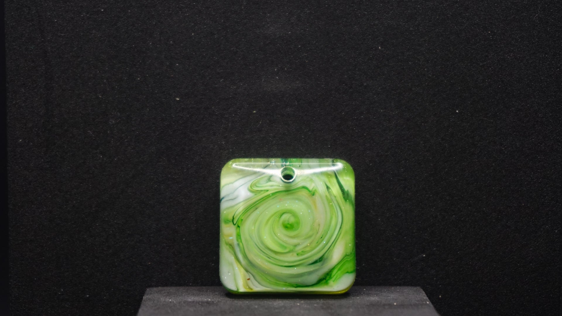 All of our pieces are resin based, featuring a variety of shimmery/sparkly mica backdrops, alcohol ink, and hand painted designs. At this time we are only including personalization on the back of the tag to not compete with the design. Most alcohol ink tags are backed in either black or white depending on what we feel works the best.
