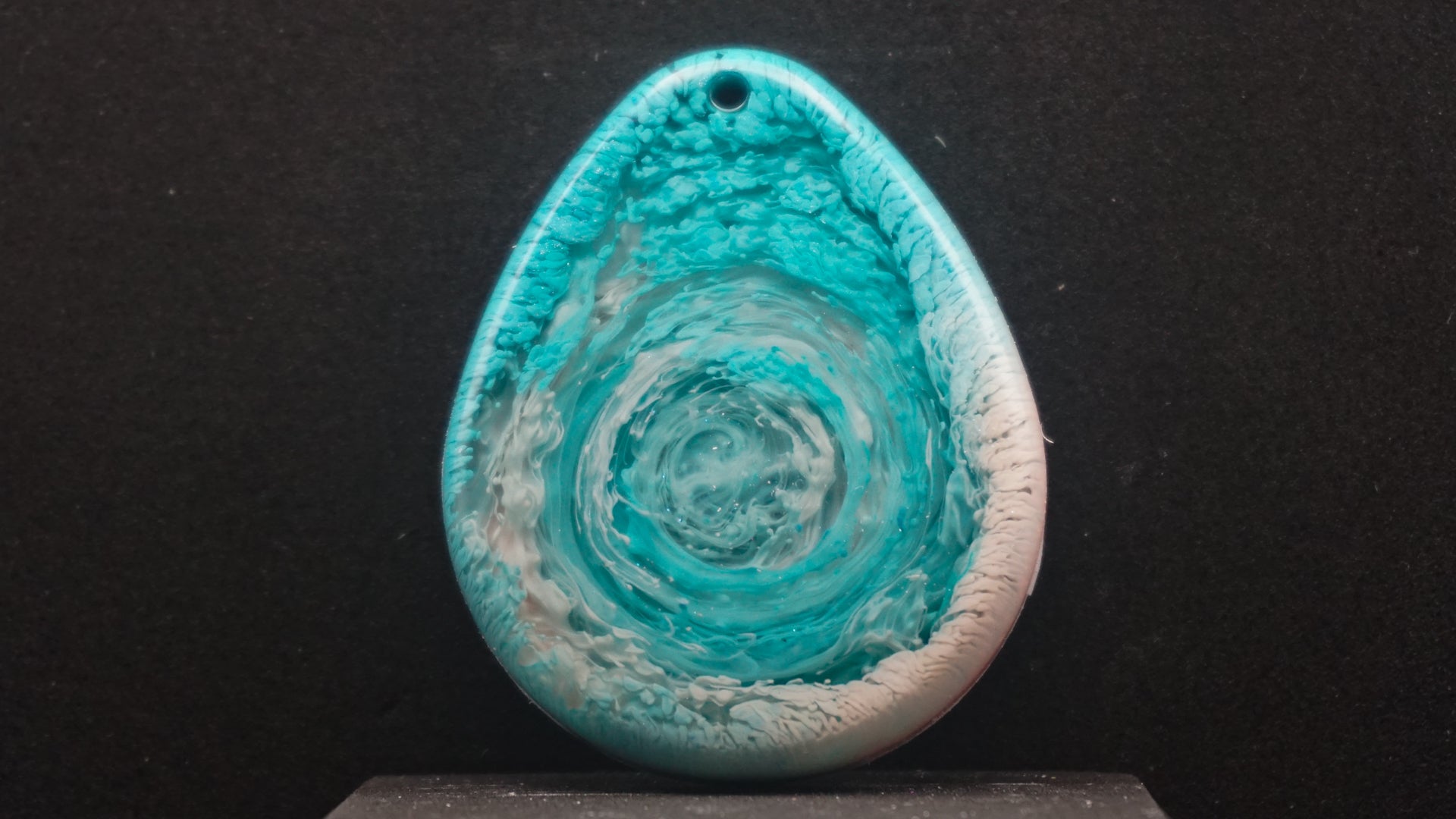 All of our pieces are resin based, featuring a variety of shimmery/sparkly mica backdrops, alcohol ink, and hand painted designs. At this time we are only including personalization on the back of the tag to not compete with the design. Most alcohol ink tags are backed in either black or white depending on what we feel works the best.