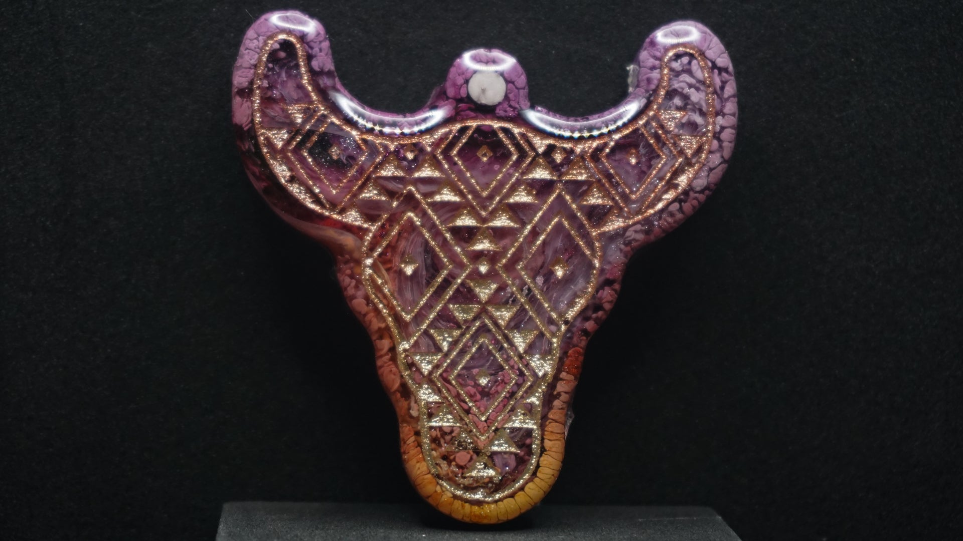 All of our pieces are resin based, featuring a variety of shimmery/sparkly mica backdrops, alcohol ink, and hand painted designs. At this time we are only including personalization on the back of the tag to not compete with the design. Most alcohol ink tags are backed in either black or white depending on what we feel works the best.