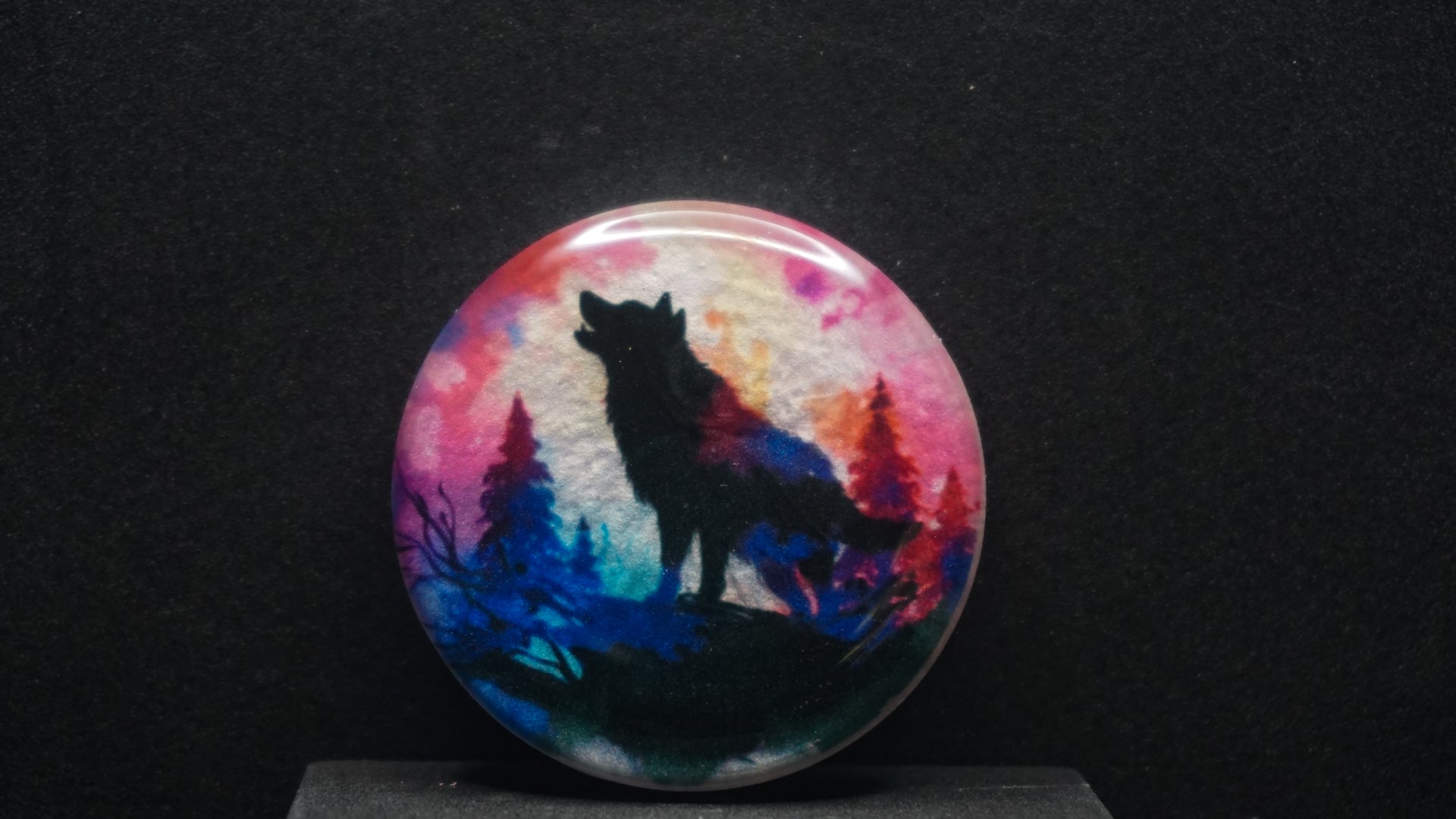 All of our pieces are resin based, featuring a variety of shimmery/sparkly mica backdrops, alcohol ink, and hand painted designs. At this time we are only including personalization on the back of the tag to not compete with the design. Most alcohol ink tags are backed in either black or white depending on what we feel works the best.