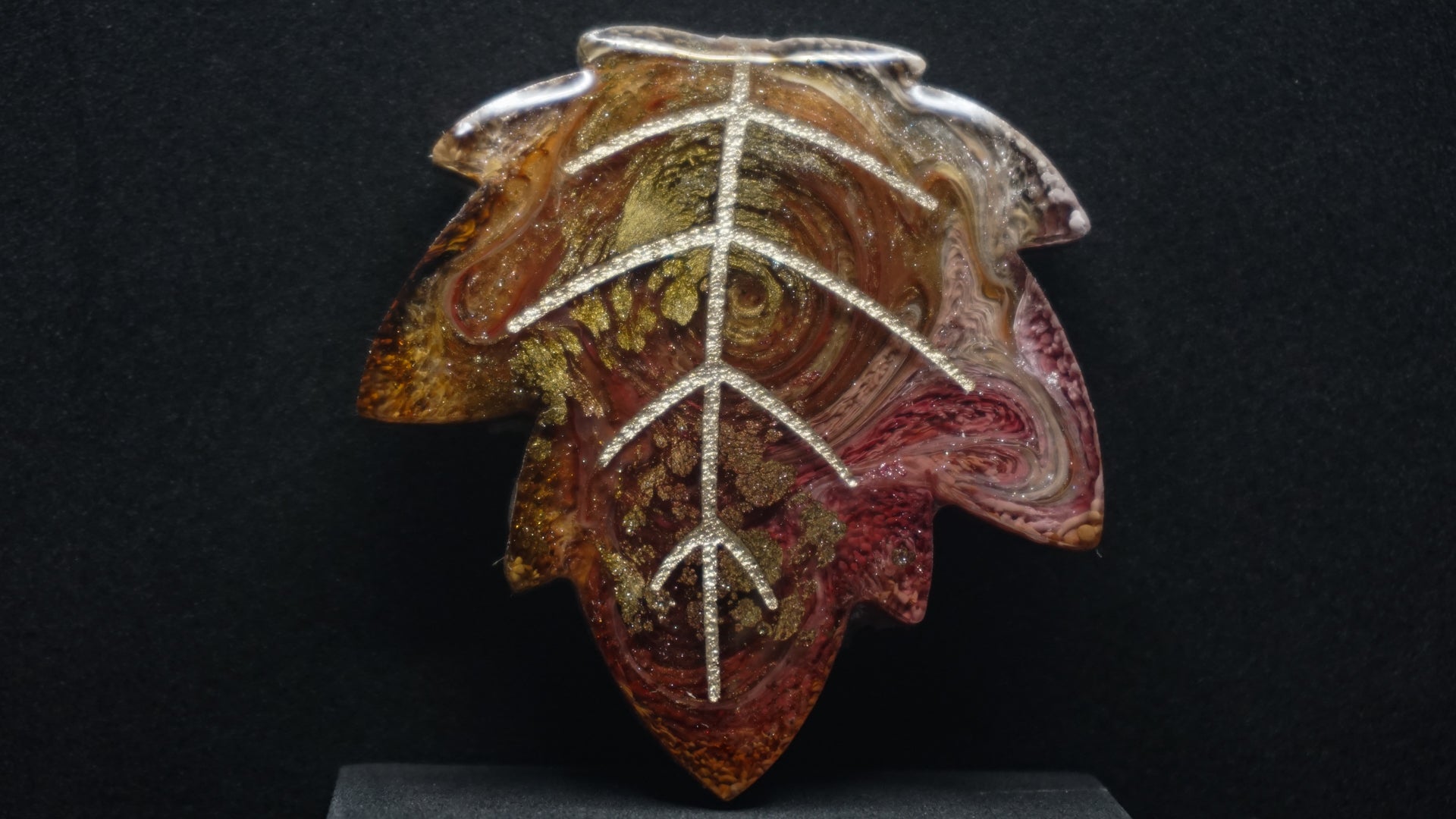 All of our pieces are resin based, featuring a variety of shimmery/sparkly mica backdrops, alcohol ink, and hand painted designs. At this time we are only including personalization on the back of the tag to not compete with the design. Most alcohol ink tags are backed in either black or white depending on what we feel works the best.