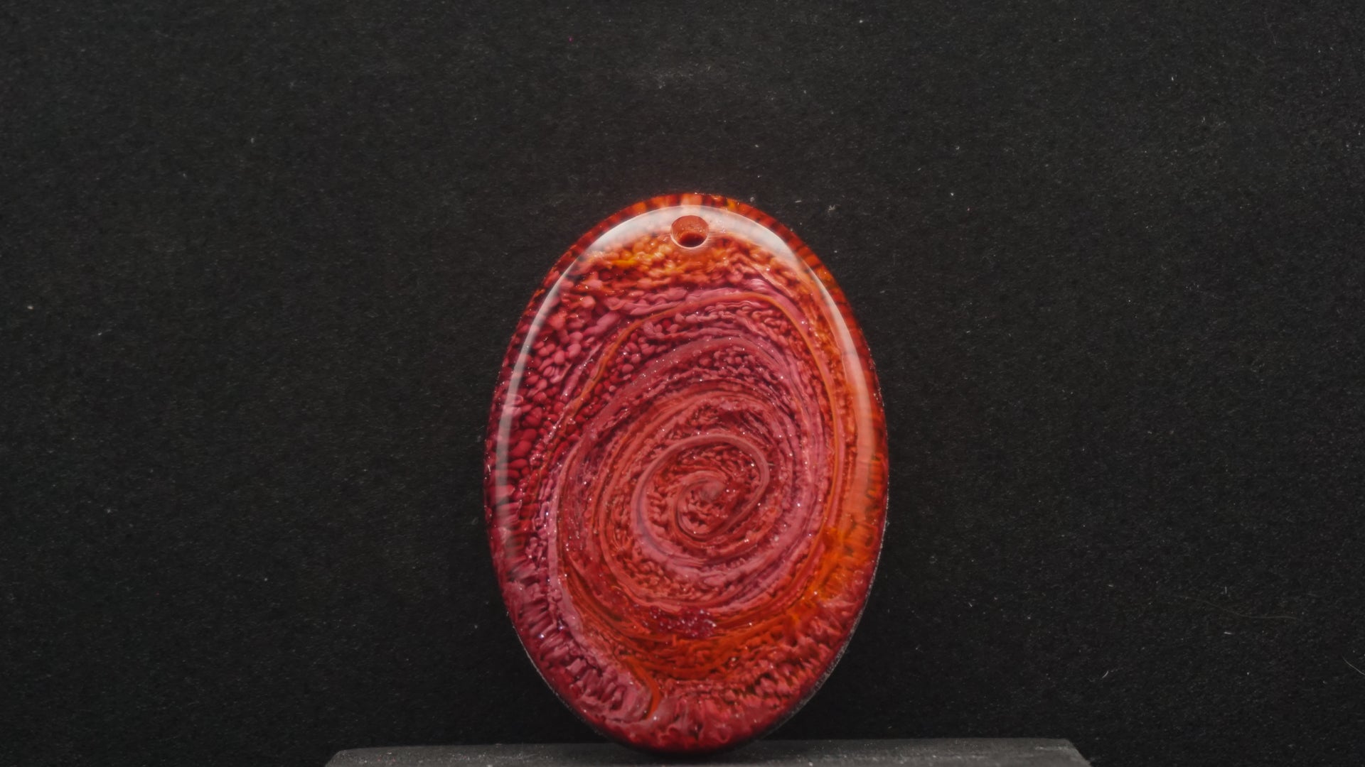 All of our pieces are resin based, featuring a variety of shimmery/sparkly mica backdrops, alcohol ink, and hand painted designs. At this time we are only including personalization on the back of the tag to not compete with the design. Most alcohol ink tags are backed in either black or white depending on what we feel works the best.