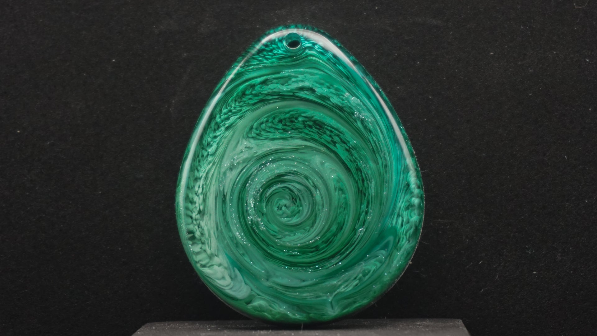 All of our pieces are resin based, featuring a variety of shimmery/sparkly mica backdrops, alcohol ink, and hand painted designs. At this time we are only including personalization on the back of the tag to not compete with the design. Most alcohol ink tags are backed in either black or white depending on what we feel works the best.