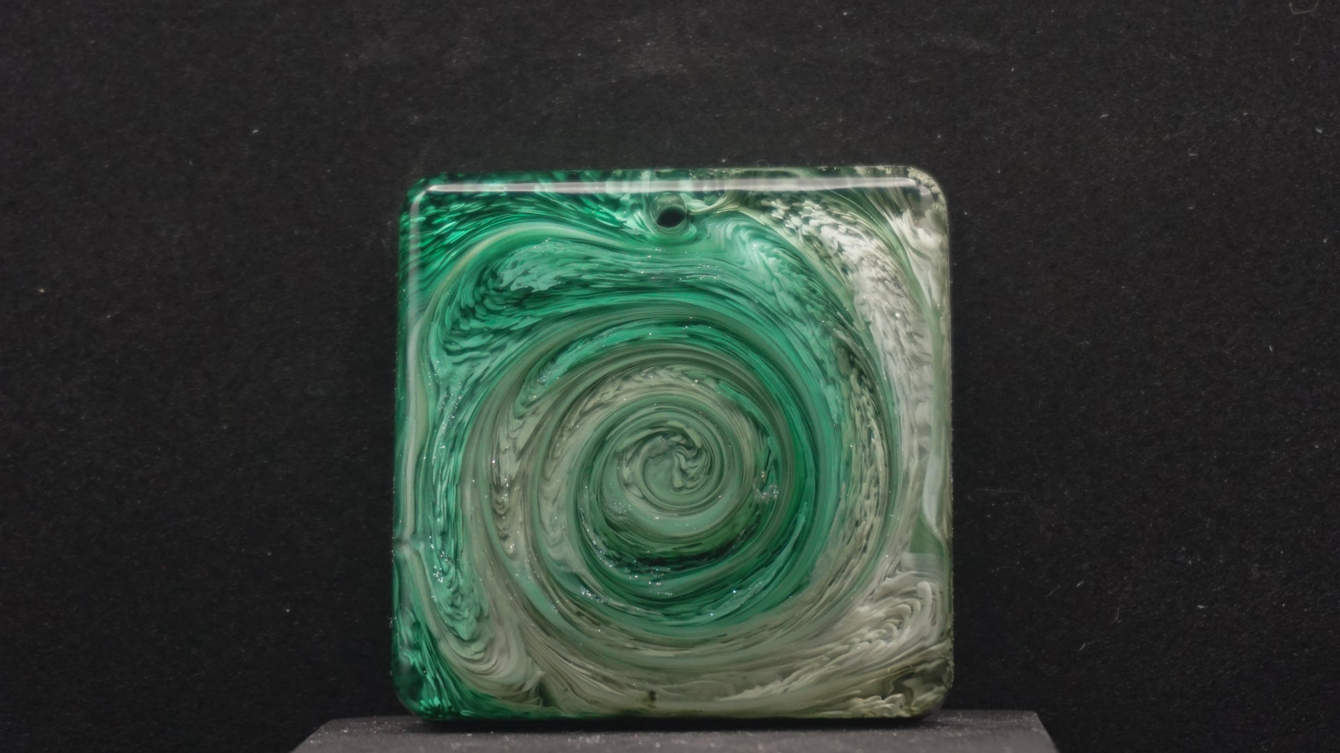 All of our pieces are resin based, featuring a variety of shimmery/sparkly mica backdrops, alcohol ink, and hand painted designs. At this time we are only including personalization on the back of the tag to not compete with the design. Most alcohol ink tags are backed in either black or white depending on what we feel works the best.