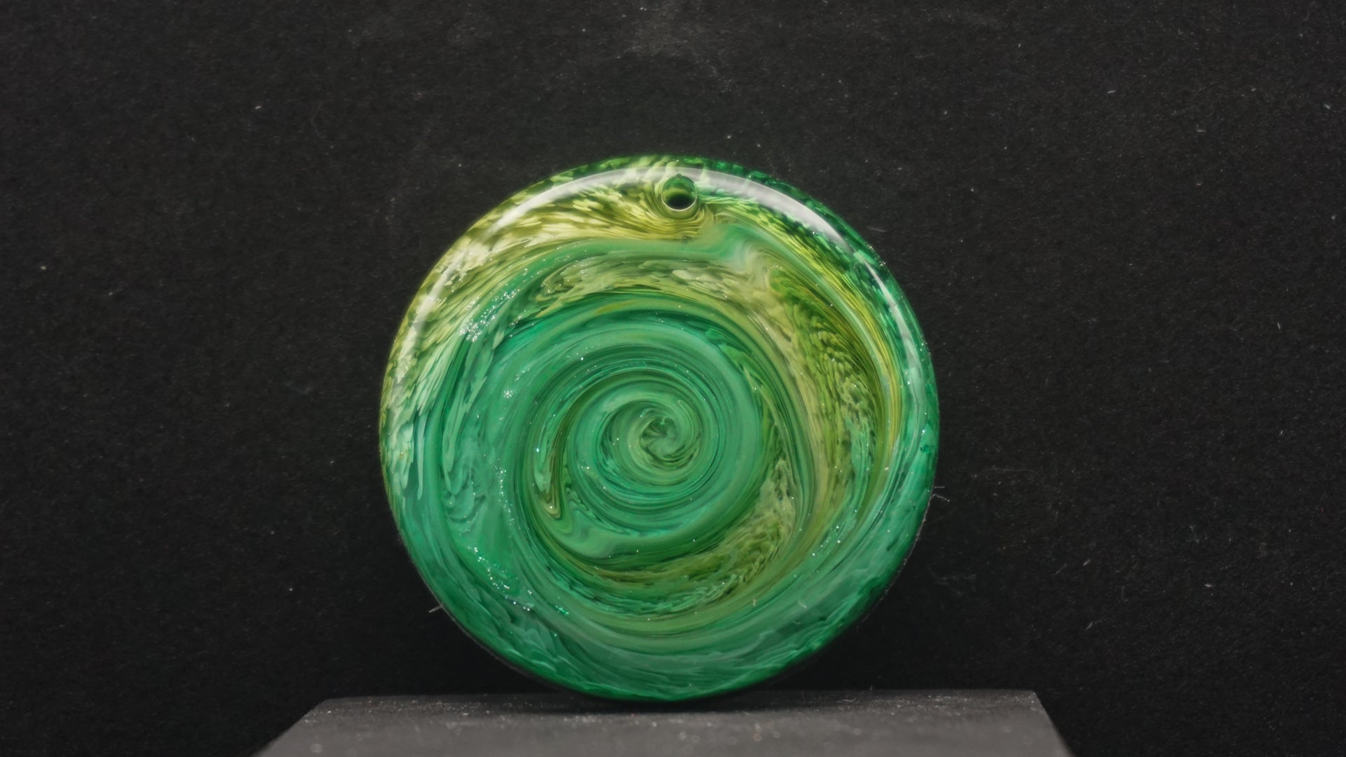 All of our pieces are resin based, featuring a variety of shimmery/sparkly mica backdrops, alcohol ink, and hand painted designs. At this time we are only including personalization on the back of the tag to not compete with the design. Most alcohol ink tags are backed in either black or white depending on what we feel works the best.