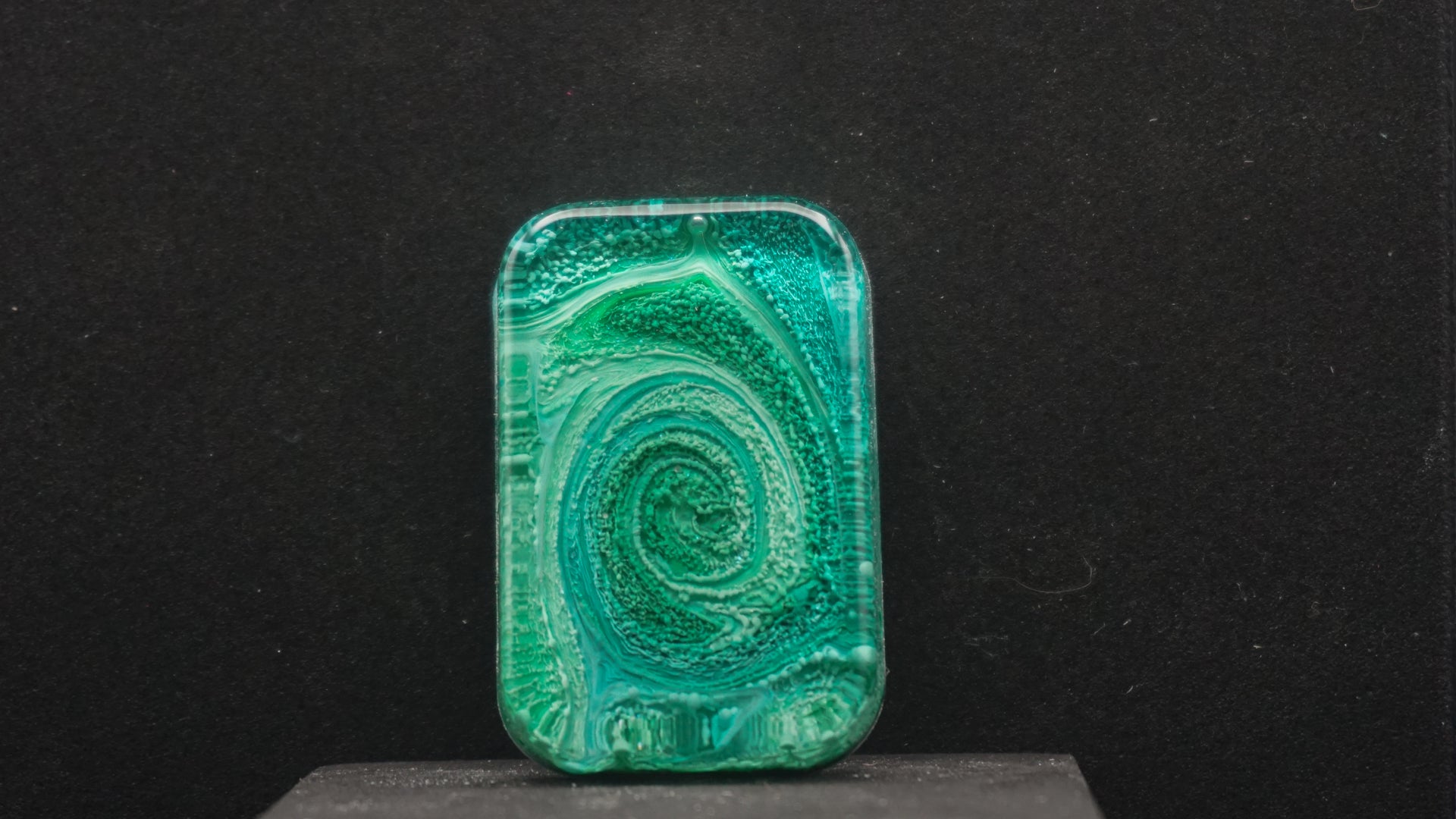 All of our pieces are resin based, featuring a variety of shimmery/sparkly mica backdrops, alcohol ink, and hand painted designs. At this time we are only including personalization on the back of the tag to not compete with the design. Most alcohol ink tags are backed in either black or white depending on what we feel works the best.