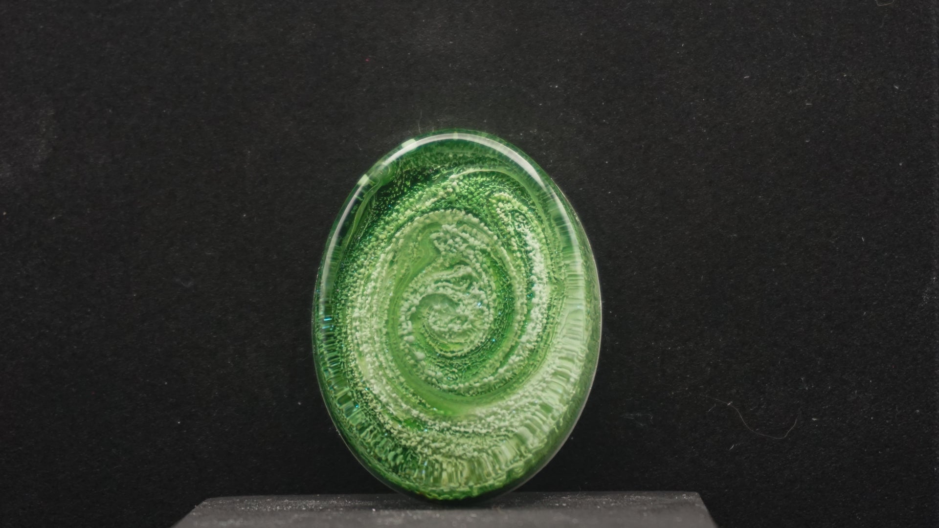 All of our pieces are resin based, featuring a variety of shimmery/sparkly mica backdrops, alcohol ink, and hand painted designs. At this time we are only including personalization on the back of the tag to not compete with the design. Most alcohol ink tags are backed in either black or white depending on what we feel works the best.