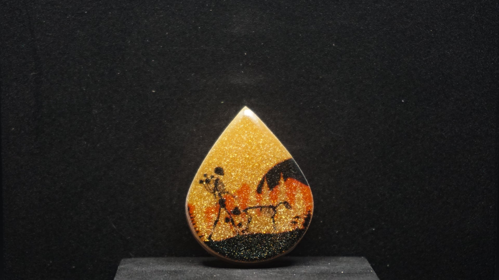 All of our pieces are resin based, featuring a variety of shimmery/sparkly mica backdrops, alcohol ink, and hand painted designs. At this time we are only including personalization on the back of the tag to not compete with the design. Most alcohol ink tags are backed in either black or white depending on what we feel works the best.