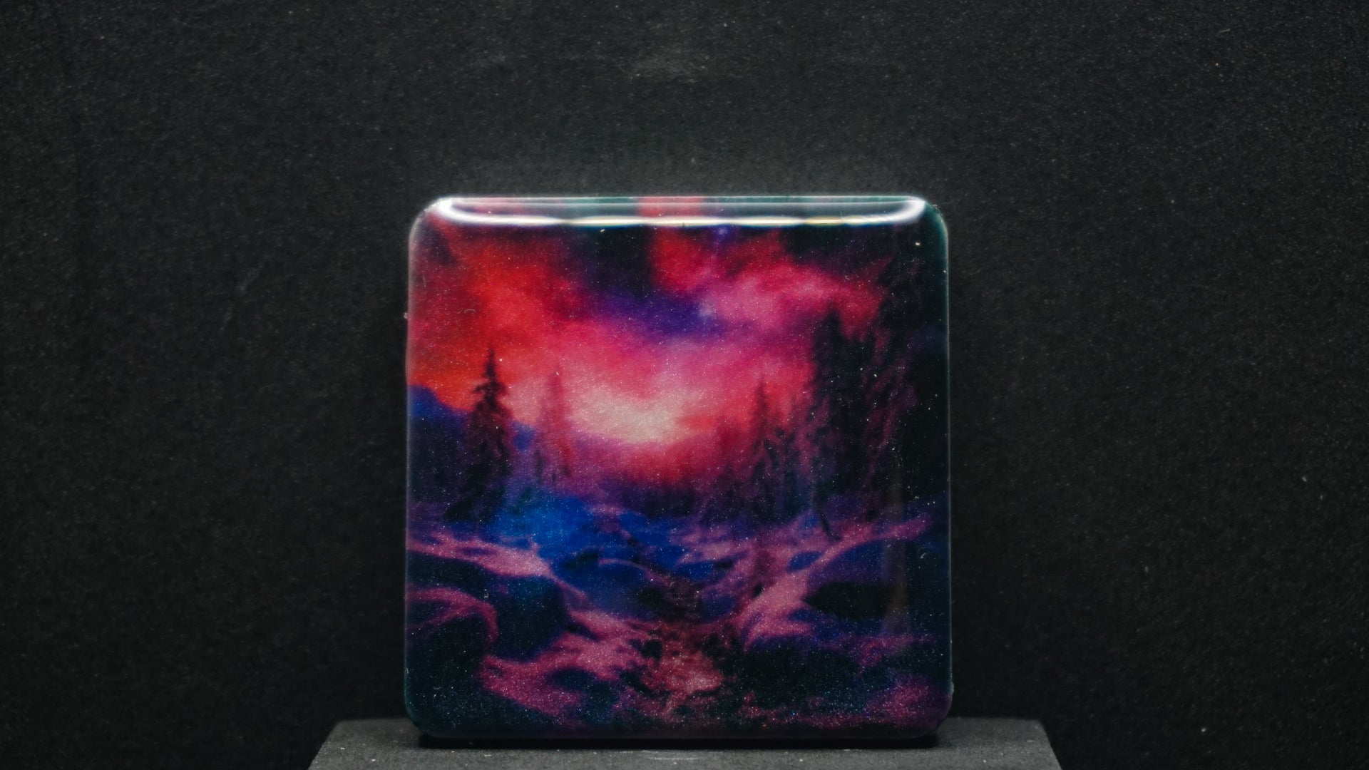 All of our pieces are resin based, featuring a variety of shimmery/sparkly mica backdrops, alcohol ink, and hand painted designs. At this time we are only including personalization on the back of the tag to not compete with the design. Most alcohol ink tags are backed in either black or white depending on what we feel works the best.