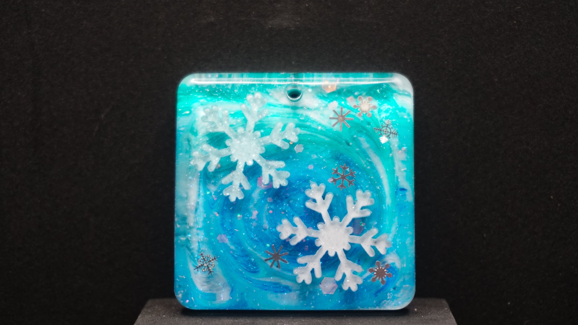 All of our pieces are resin based, featuring a variety of shimmery/sparkly mica backdrops, alcohol ink, and hand painted designs. At this time we are only including personalization on the back of the tag to not compete with the design. Most alcohol ink tags are backed in either black or white depending on what we feel works the best.
