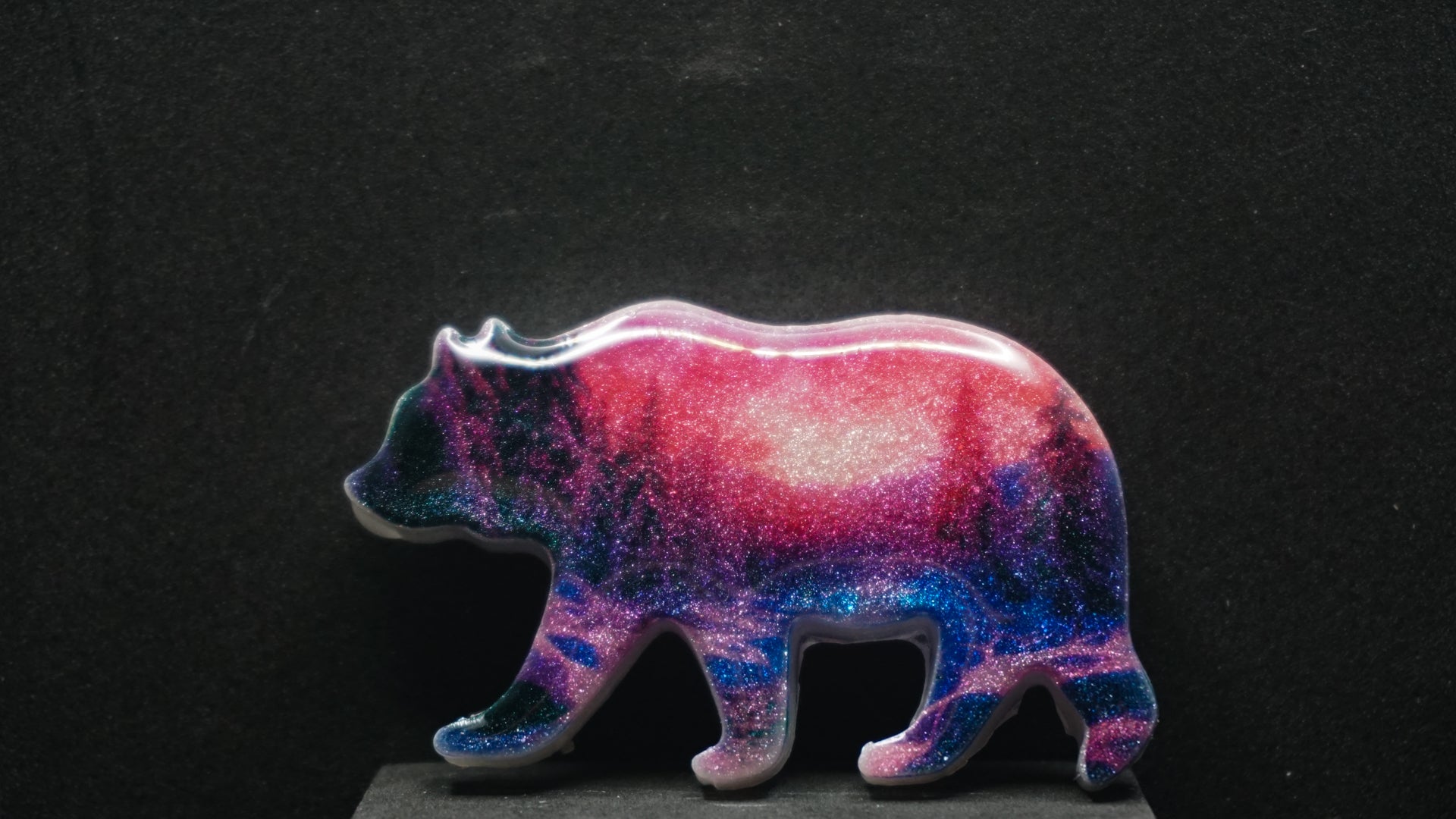 All of our pieces are resin based, featuring a variety of shimmery/sparkly mica backdrops, alcohol ink, and hand painted designs. At this time we are only including personalization on the back of the tag to not compete with the design. Most alcohol ink tags are backed in either black or white depending on what we feel works the best.