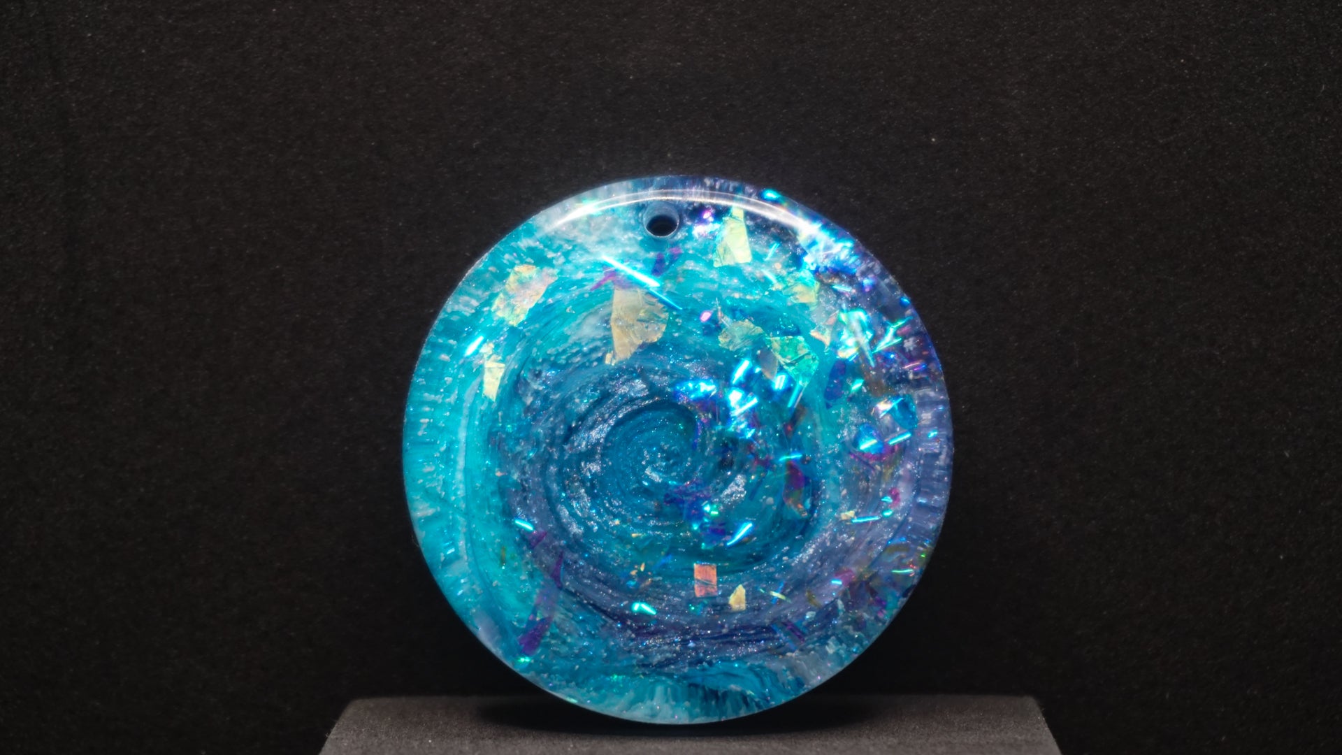 All of our pieces are resin based, featuring a variety of shimmery/sparkly mica backdrops, alcohol ink, and hand painted designs. At this time we are only including personalization on the back of the tag to not compete with the design. Most alcohol ink tags are backed in either black or white depending on what we feel works the best.