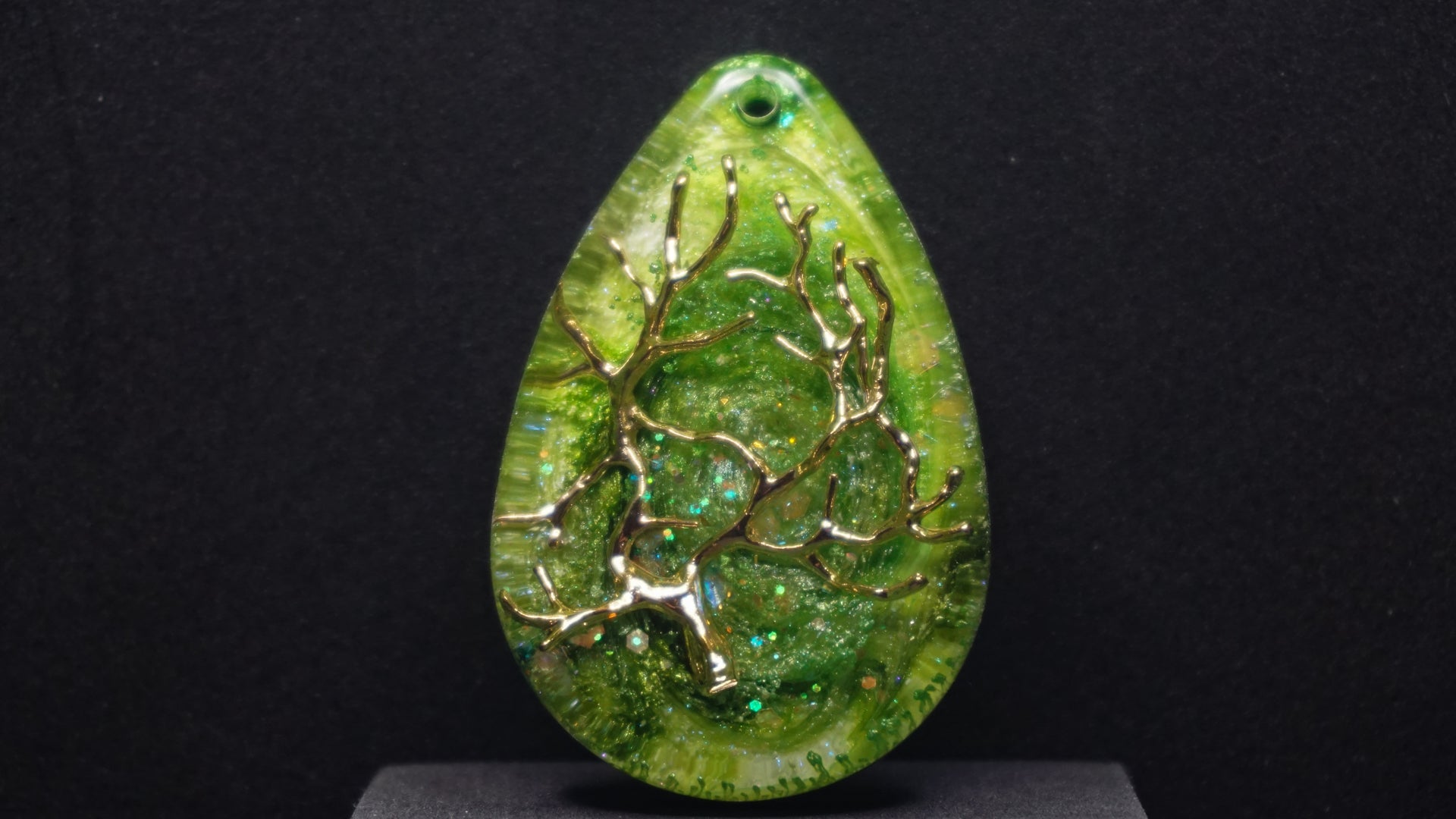 All of our pieces are resin based, featuring a variety of shimmery/sparkly mica backdrops, alcohol ink, and hand painted designs. At this time we are only including personalization on the back of the tag to not compete with the design. Most alcohol ink tags are backed in either black or white depending on what we feel works the best.