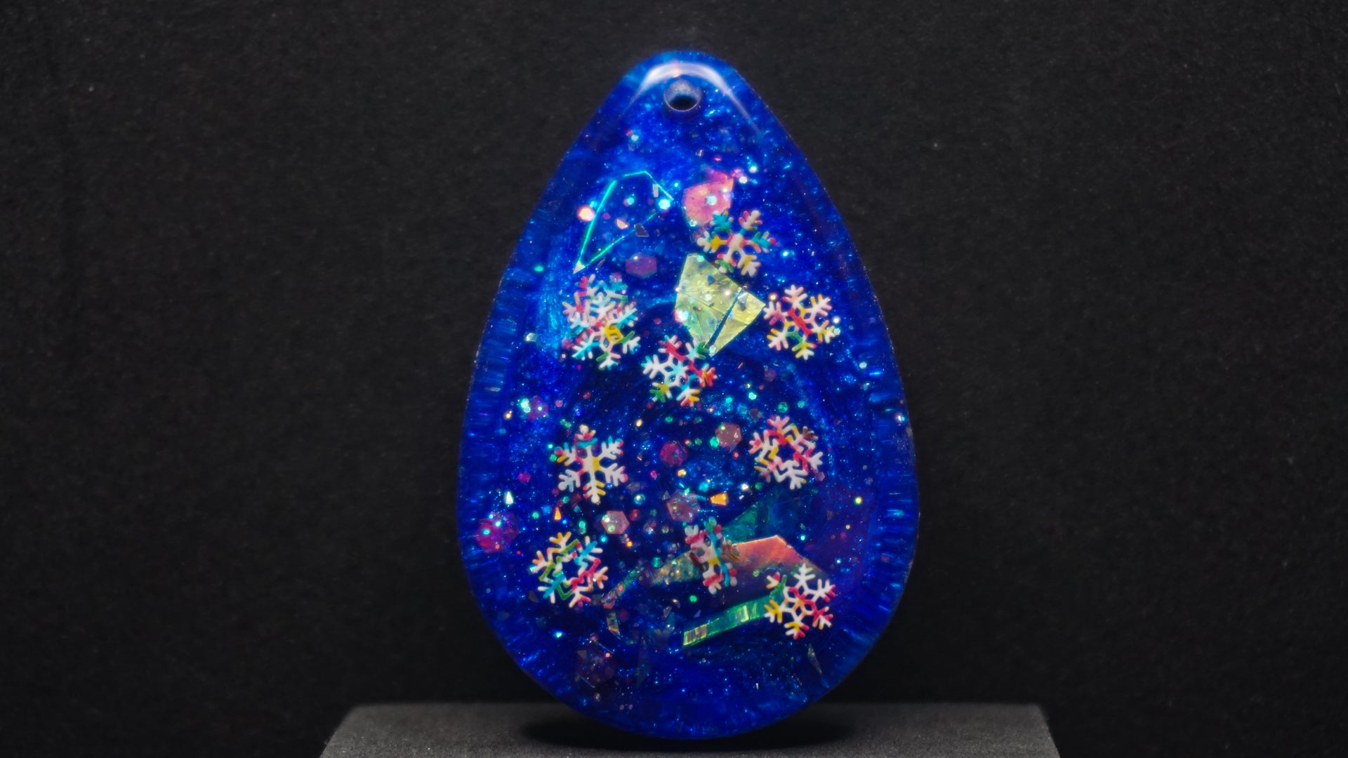 All of our pieces are resin based, featuring a variety of shimmery/sparkly mica backdrops, alcohol ink, and hand painted designs. At this time we are only including personalization on the back of the tag to not compete with the design. Most alcohol ink tags are backed in either black or white depending on what we feel works the best.