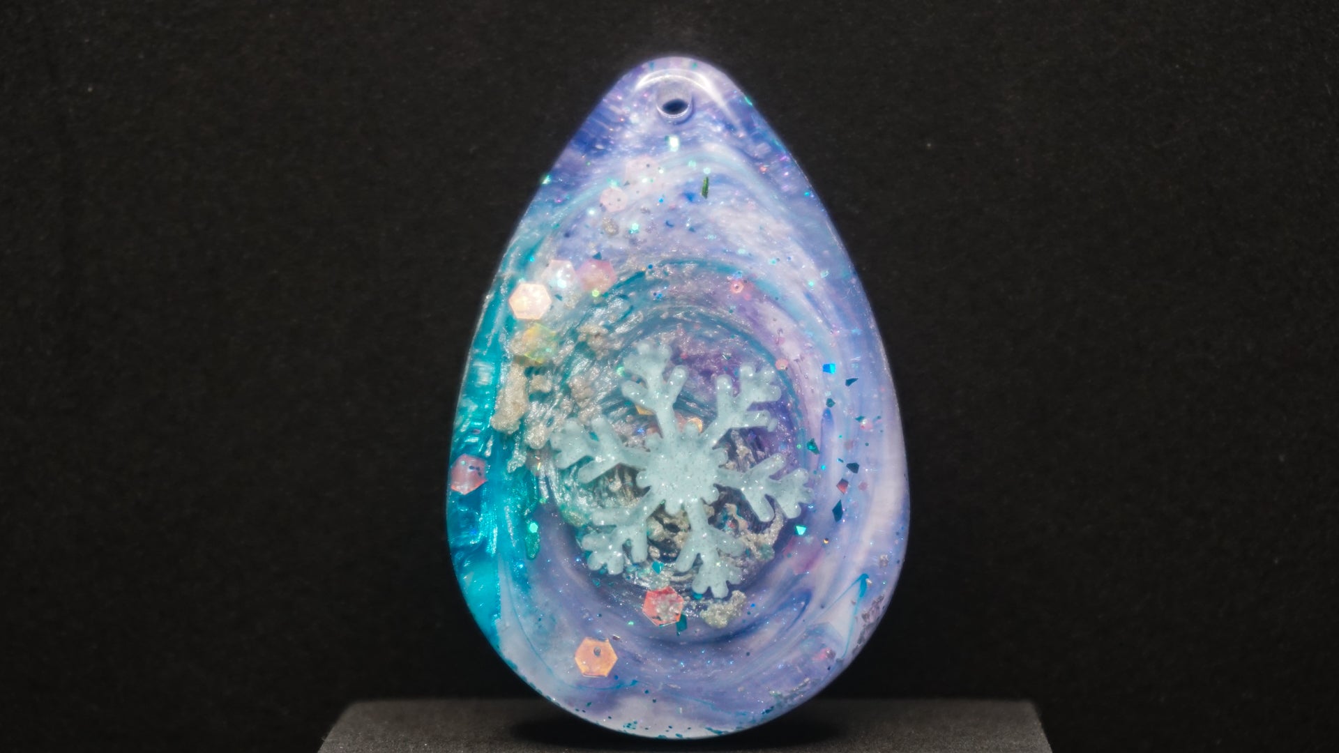 All of our pieces are resin based, featuring a variety of shimmery/sparkly mica backdrops, alcohol ink, and hand painted designs. At this time we are only including personalization on the back of the tag to not compete with the design. Most alcohol ink tags are backed in either black or white depending on what we feel works the best.