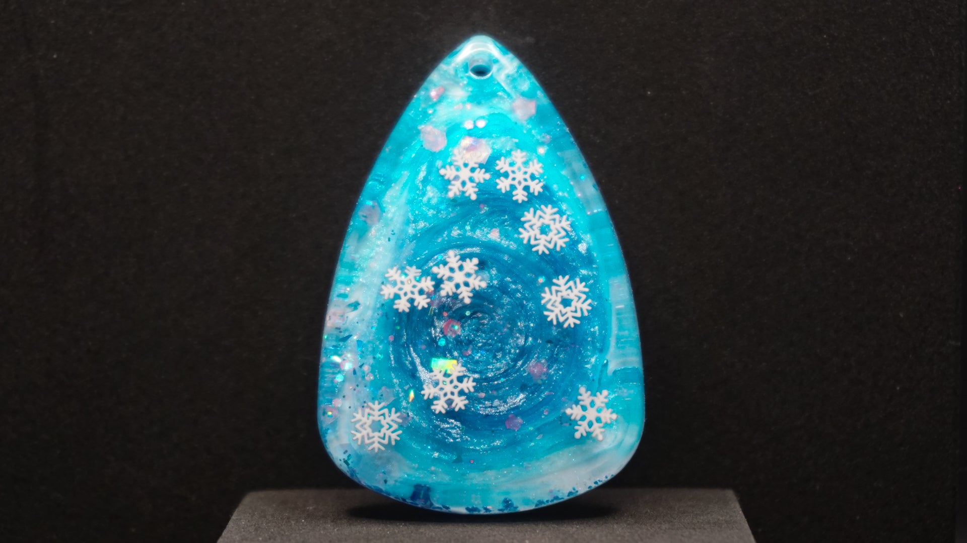 All of our pieces are resin based, featuring a variety of shimmery/sparkly mica backdrops, alcohol ink, and hand painted designs. At this time we are only including personalization on the back of the tag to not compete with the design. Most alcohol ink tags are backed in either black or white depending on what we feel works the best.