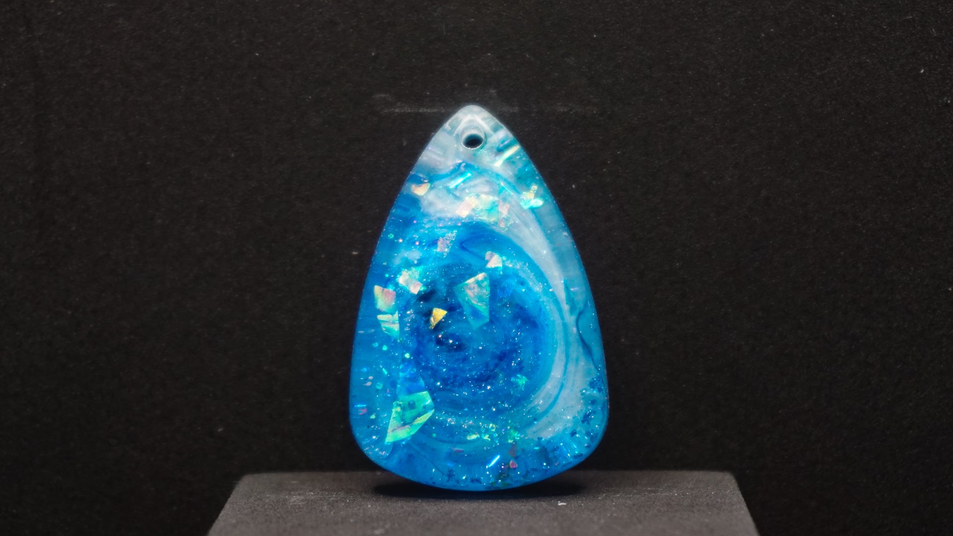 All of our pieces are resin based, featuring a variety of shimmery/sparkly mica backdrops, alcohol ink, and hand painted designs. At this time we are only including personalization on the back of the tag to not compete with the design. Most alcohol ink tags are backed in either black or white depending on what we feel works the best.