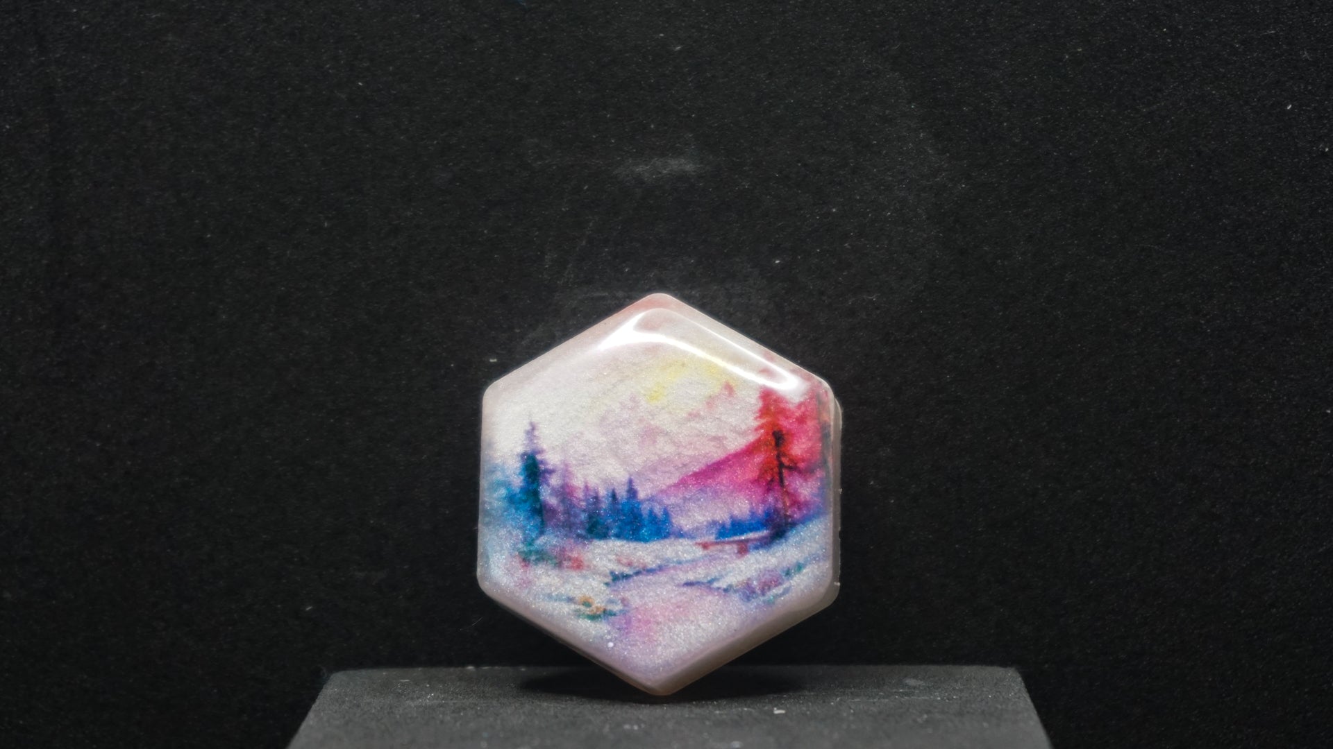 All of our pieces are resin based, featuring a variety of shimmery/sparkly mica backdrops, alcohol ink, and hand painted designs. At this time we are only including personalization on the back of the tag to not compete with the design. Most alcohol ink tags are backed in either black or white depending on what we feel works the best.
