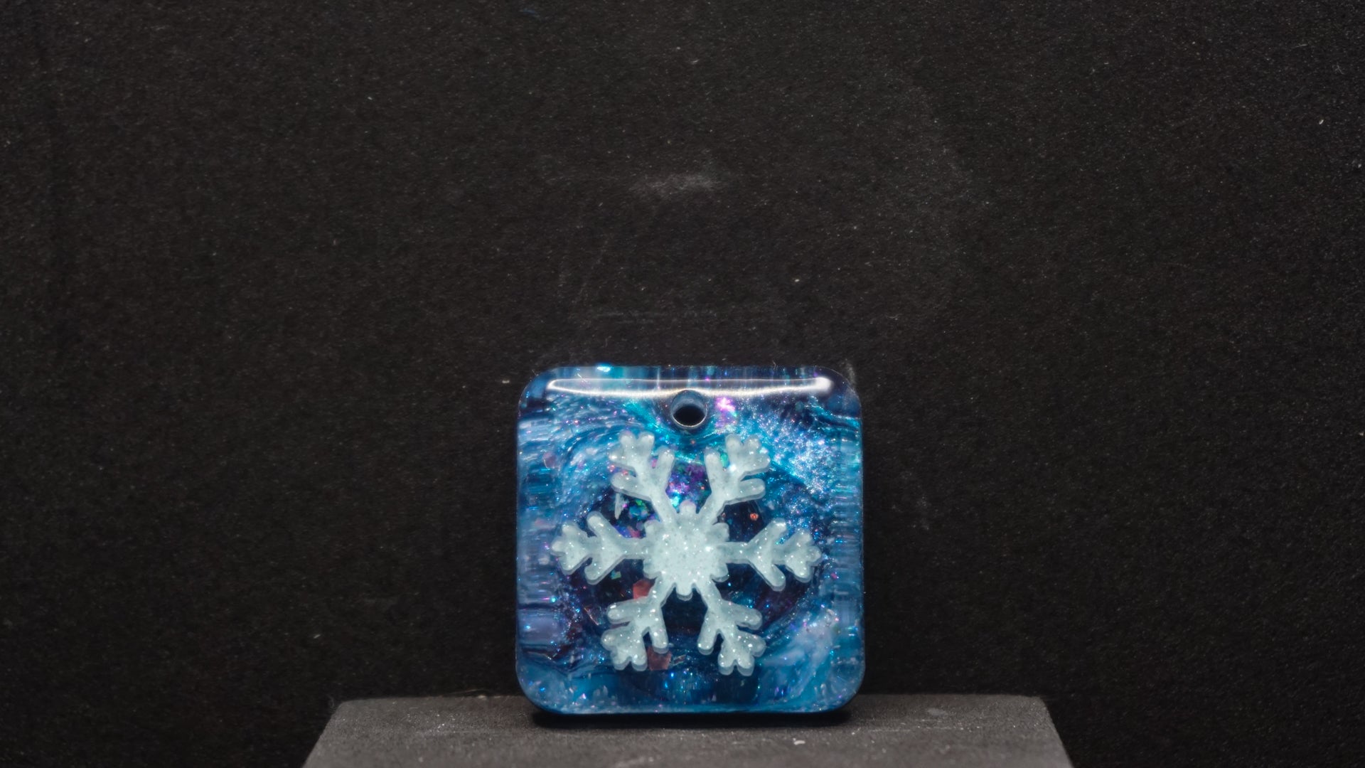 All of our pieces are resin based, featuring a variety of shimmery/sparkly mica backdrops, alcohol ink, and hand painted designs. At this time we are only including personalization on the back of the tag to not compete with the design. Most alcohol ink tags are backed in either black or white depending on what we feel works the best.