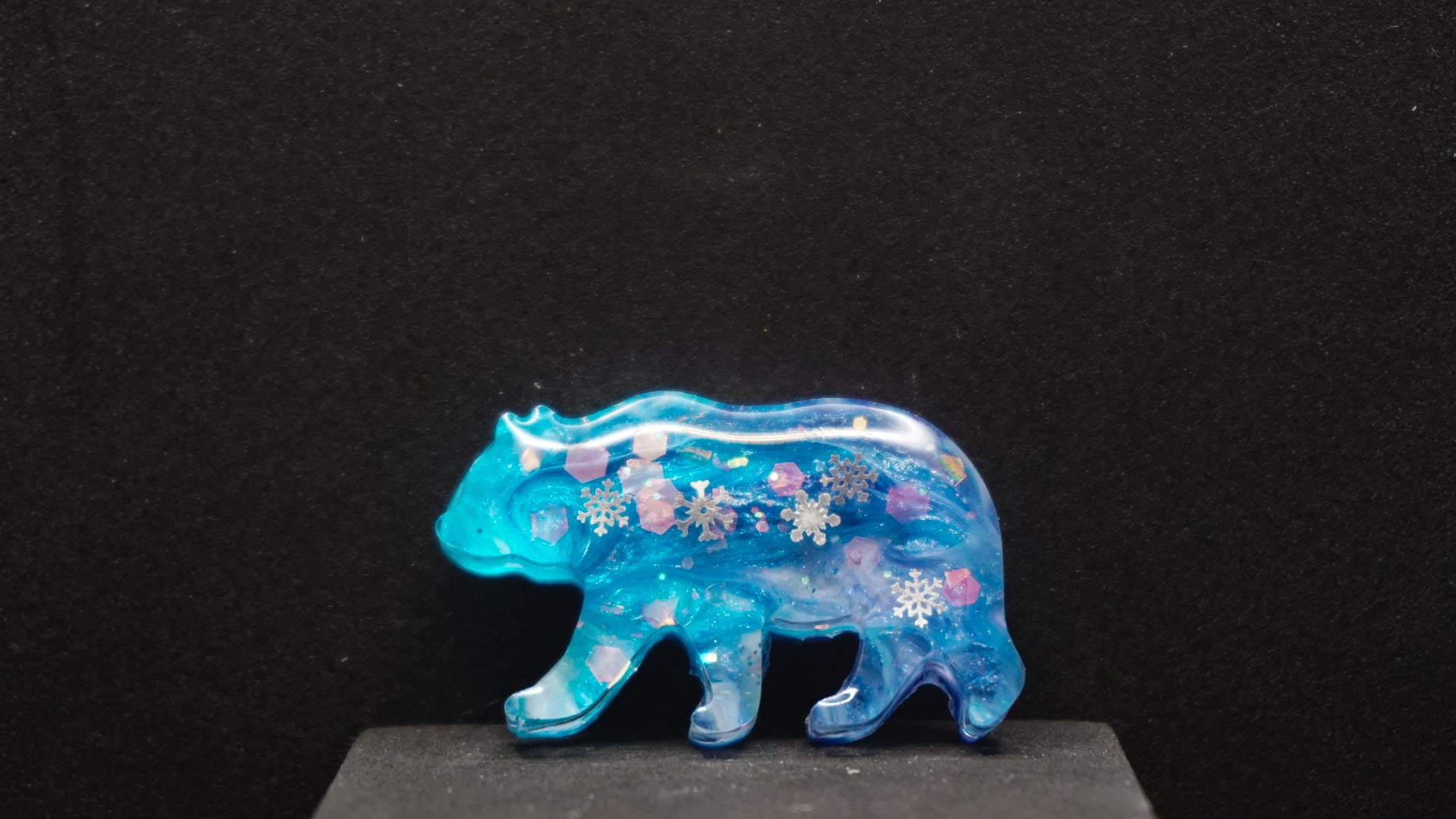 All of our pieces are resin based, featuring a variety of shimmery/sparkly mica backdrops, alcohol ink, and hand painted designs. At this time we are only including personalization on the back of the tag to not compete with the design. Most alcohol ink tags are backed in either black or white depending on what we feel works the best.