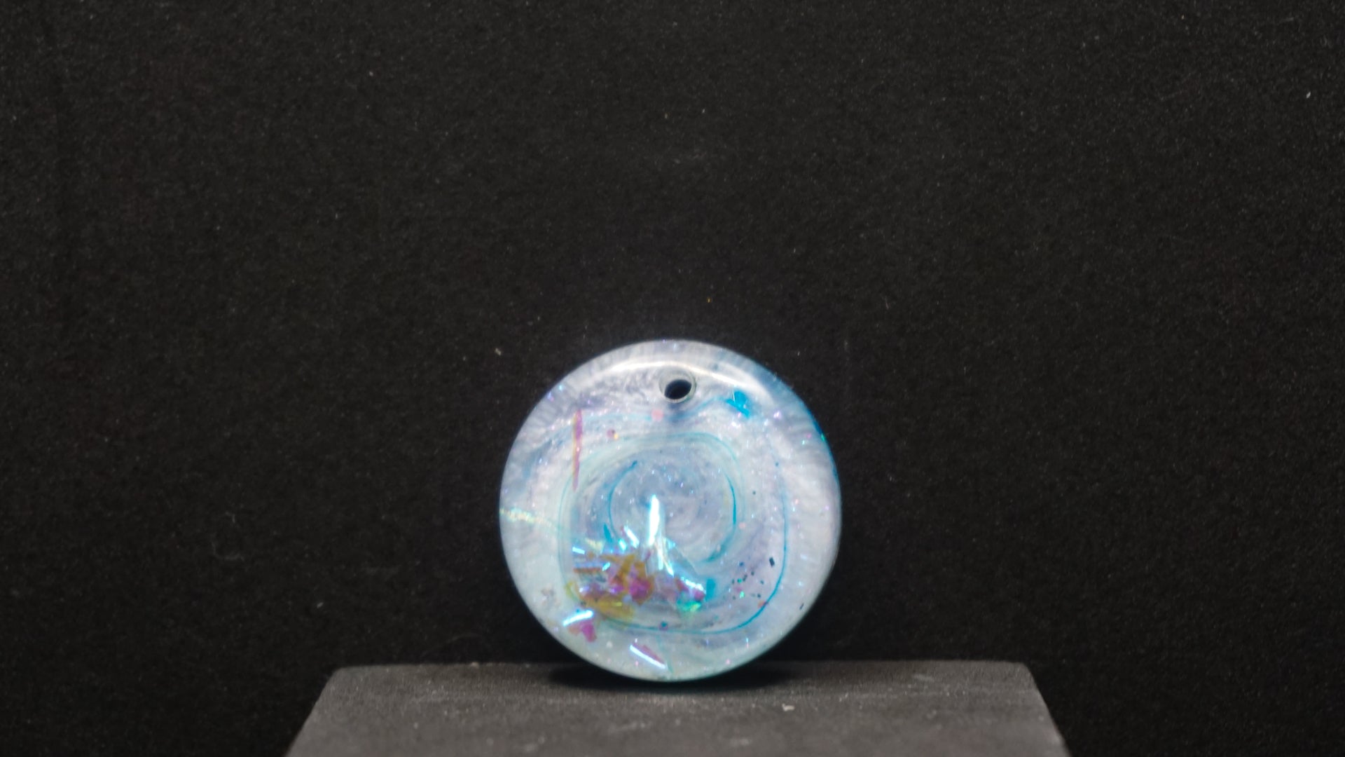 All of our pieces are resin based, featuring a variety of shimmery/sparkly mica backdrops, alcohol ink, and hand painted designs. At this time we are only including personalization on the back of the tag to not compete with the design. Most alcohol ink tags are backed in either black or white depending on what we feel works the best.