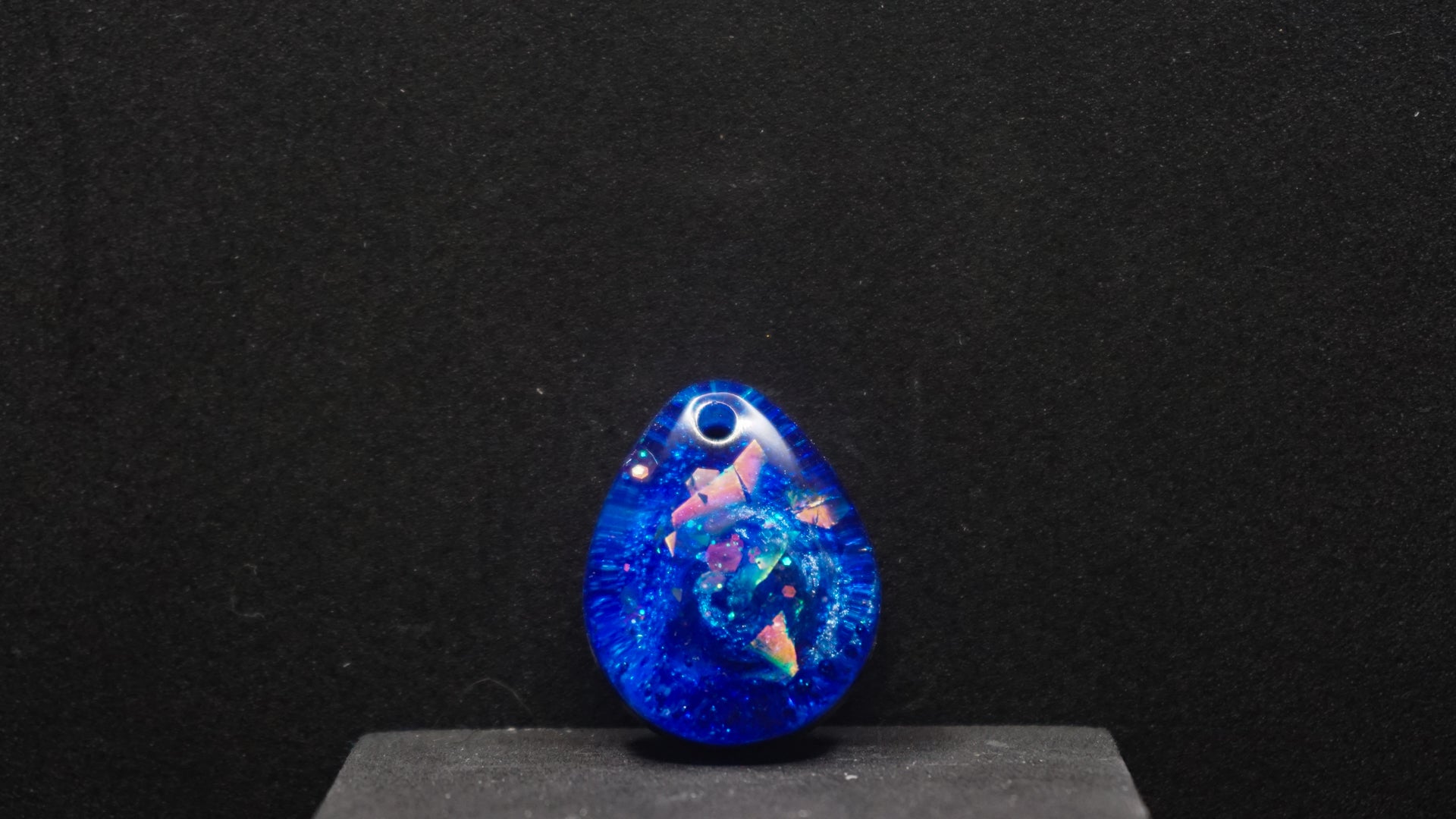 All of our pieces are resin based, featuring a variety of shimmery/sparkly mica backdrops, alcohol ink, and hand painted designs. At this time we are only including personalization on the back of the tag to not compete with the design. Most alcohol ink tags are backed in either black or white depending on what we feel works the best.