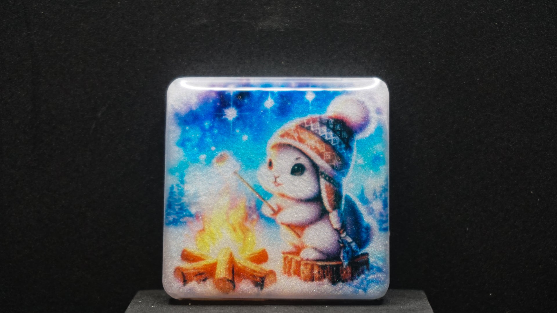 All of our pieces are resin based, featuring a variety of shimmery/sparkly mica backdrops, alcohol ink, and hand painted designs. At this time we are only including personalization on the back of the tag to not compete with the design. Most alcohol ink tags are backed in either black or white depending on what we feel works the best.
