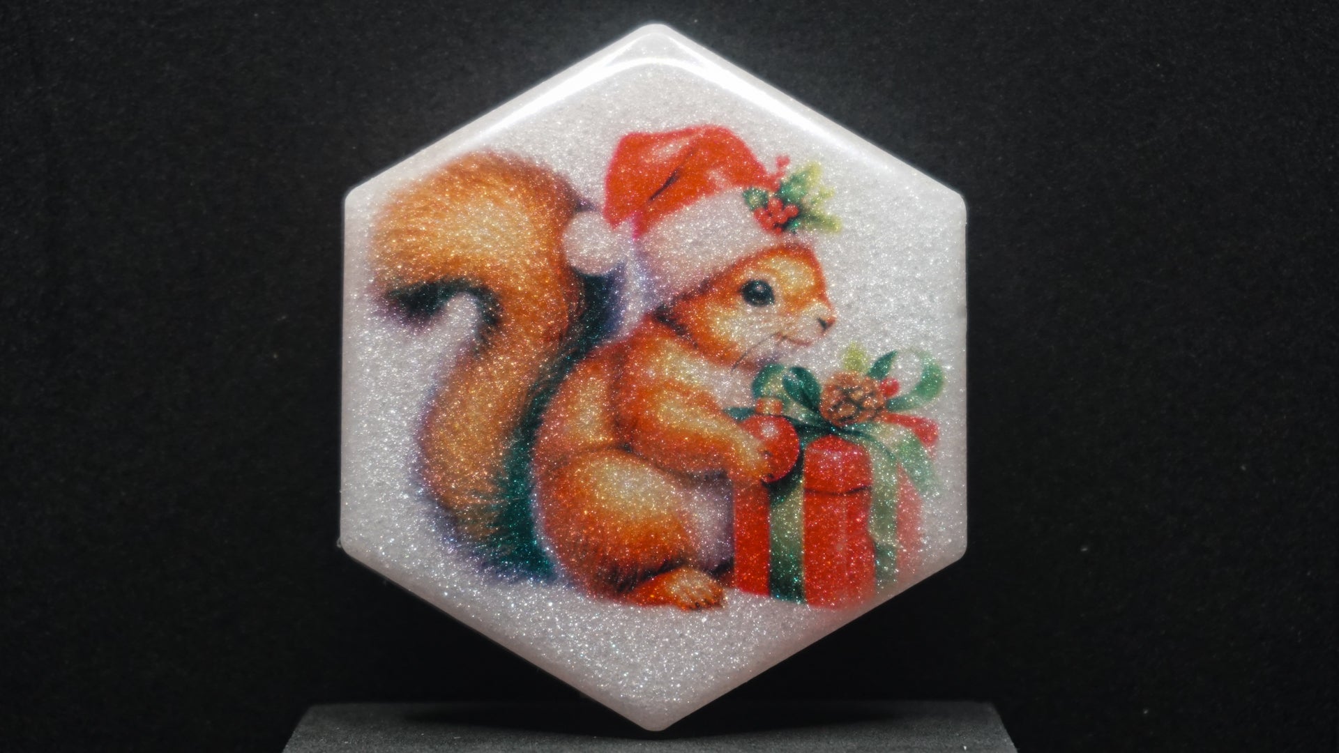 All of our pieces are resin based, featuring a variety of shimmery/sparkly mica backdrops, alcohol ink, and hand painted designs. At this time we are only including personalization on the back of the tag to not compete with the design. Most alcohol ink tags are backed in either black or white depending on what we feel works the best.