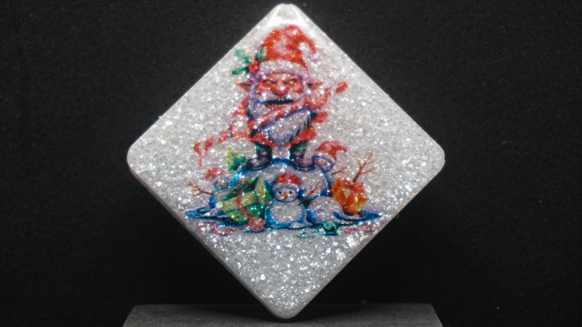 All of our pieces are resin based, featuring a variety of shimmery/sparkly mica backdrops, alcohol ink, and hand painted designs. At this time we are only including personalization on the back of the tag to not compete with the design. Most alcohol ink tags are backed in either black or white depending on what we feel works the best.