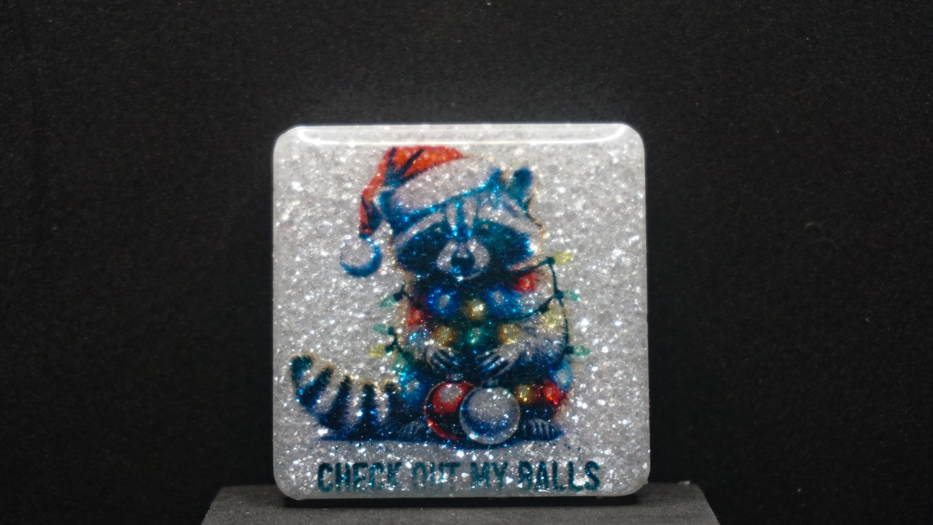 All of our pieces are resin based, featuring a variety of shimmery/sparkly mica backdrops, alcohol ink, and hand painted designs. At this time we are only including personalization on the back of the tag to not compete with the design. Most alcohol ink tags are backed in either black or white depending on what we feel works the best.